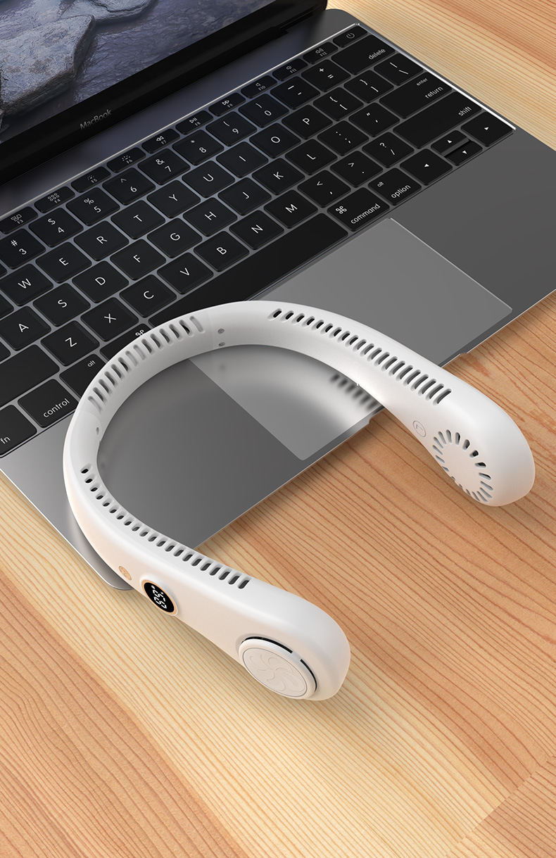 Nuevo ventilador de Halter sin hojas transfronterizo USB portátil al aire libre de cinco engranajes Pantalla Digital estudiante mini Halter pequeño ventilador