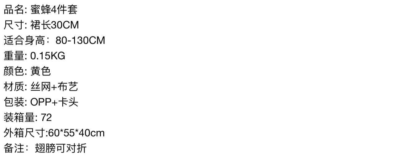 Traje de abeja para niños alas rendimiento conjunto de tres piezas accesorios de rendimiento para niños pequeña abeja elfo vestir