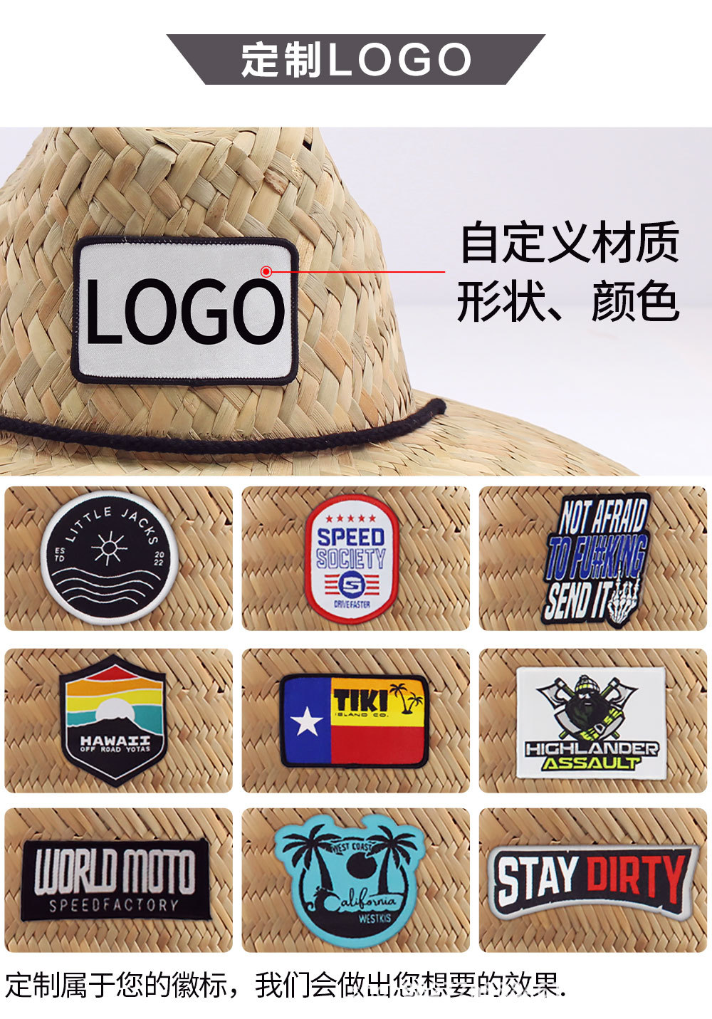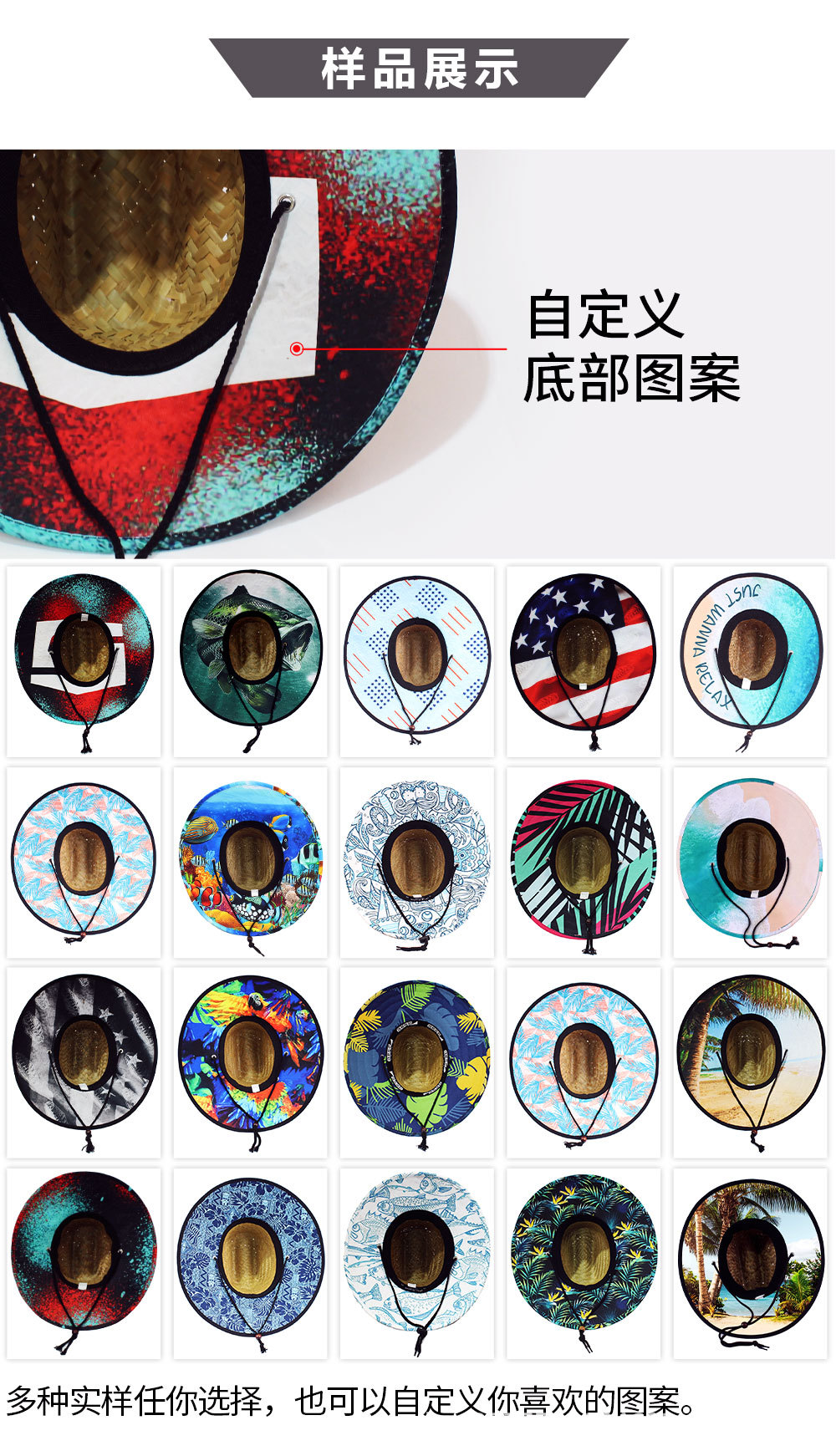 Parche de paja hueco de fábrica para hombres y mujeres sombrero de paja impreso sombrilla tejida a mano sombrero de paja transfronterizo