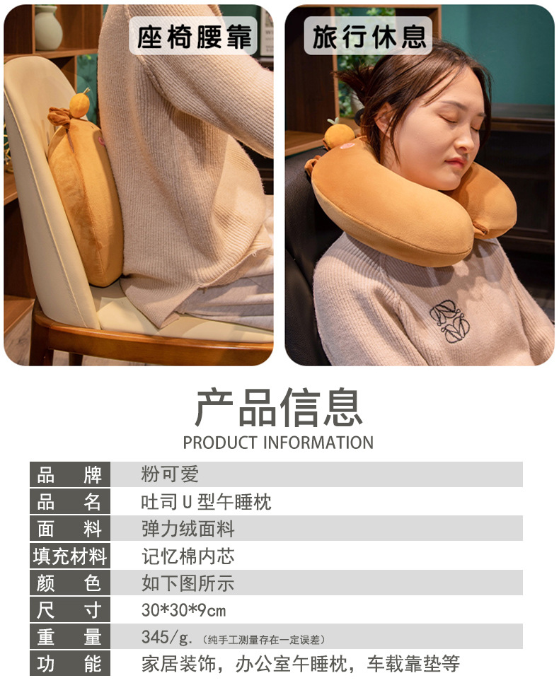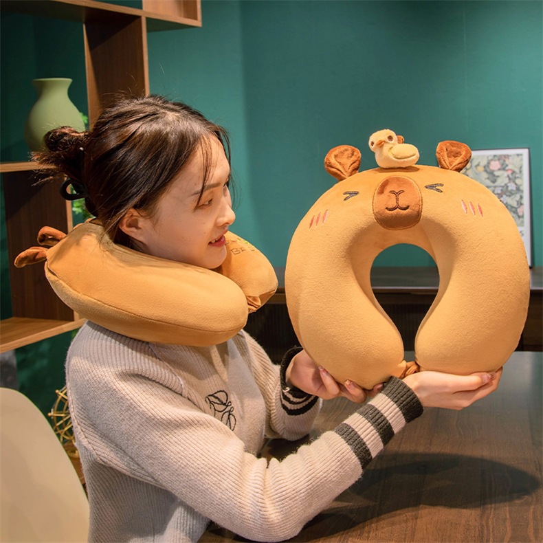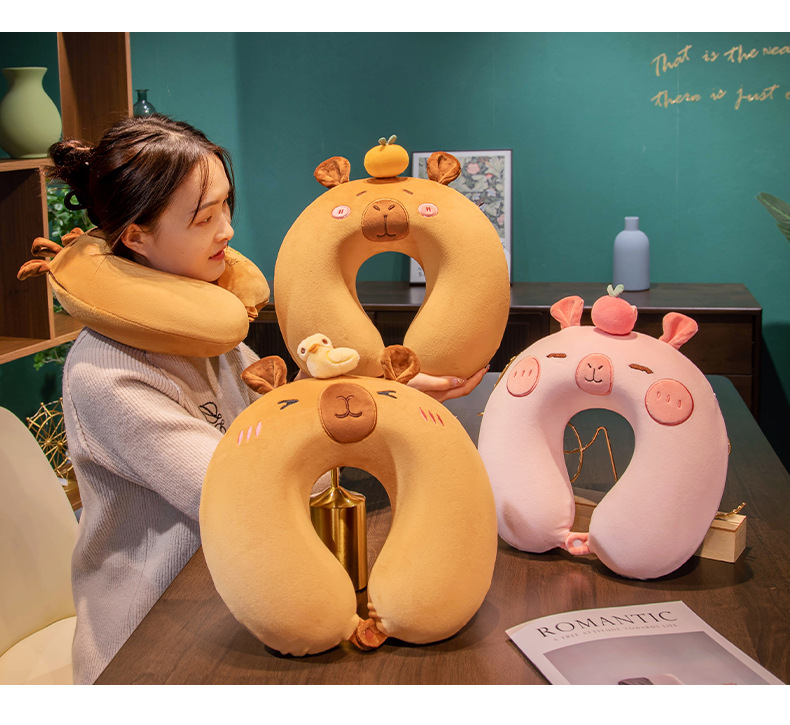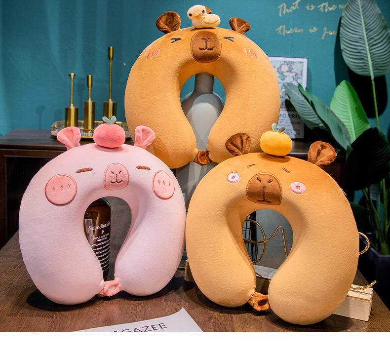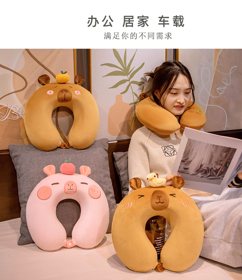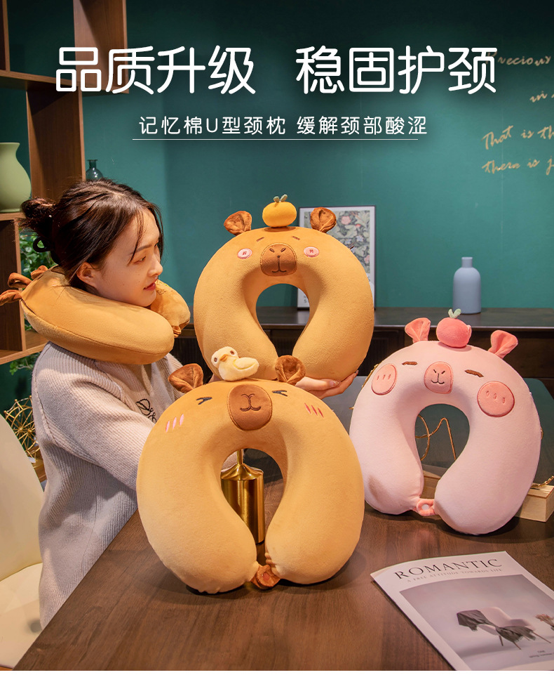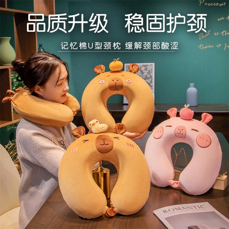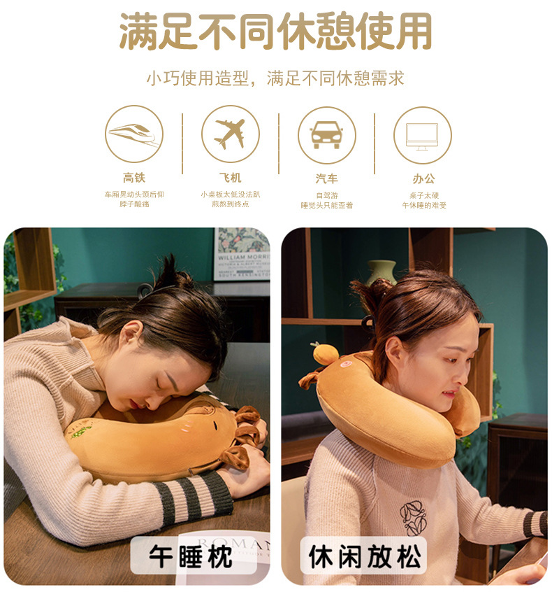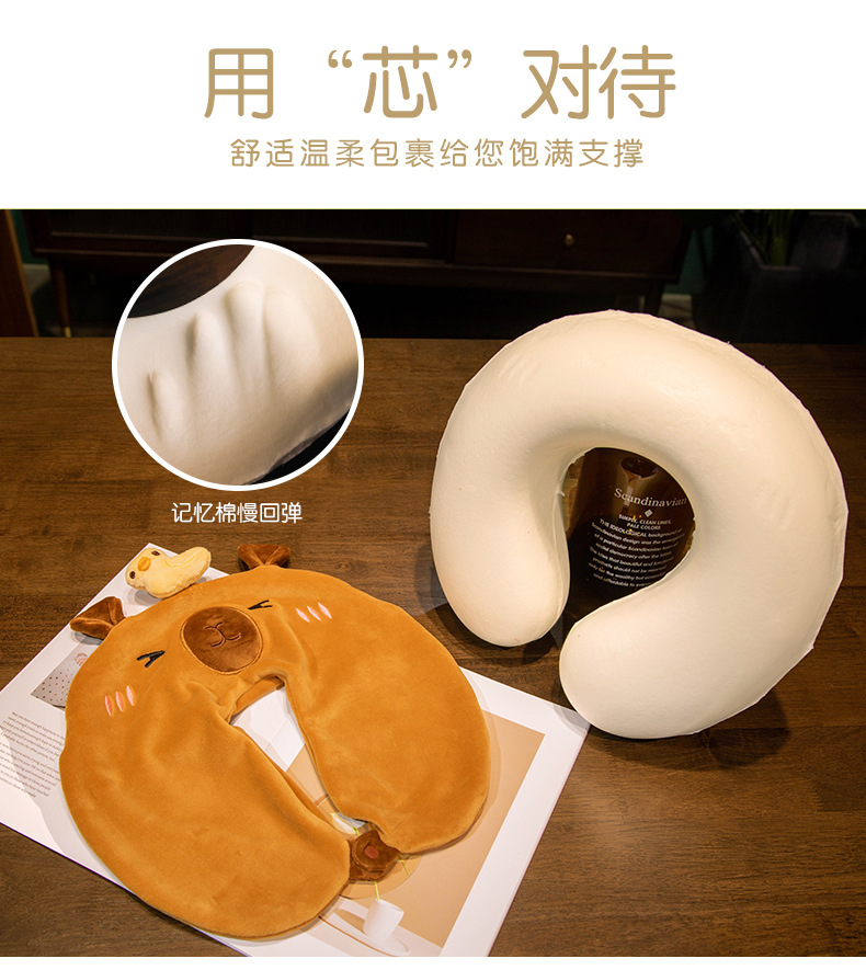 Memoria de dibujos animados Algodón u almohada cuello lindo almohada cervical protección de la columna cervical coche de viaje portátil multifuncional verano