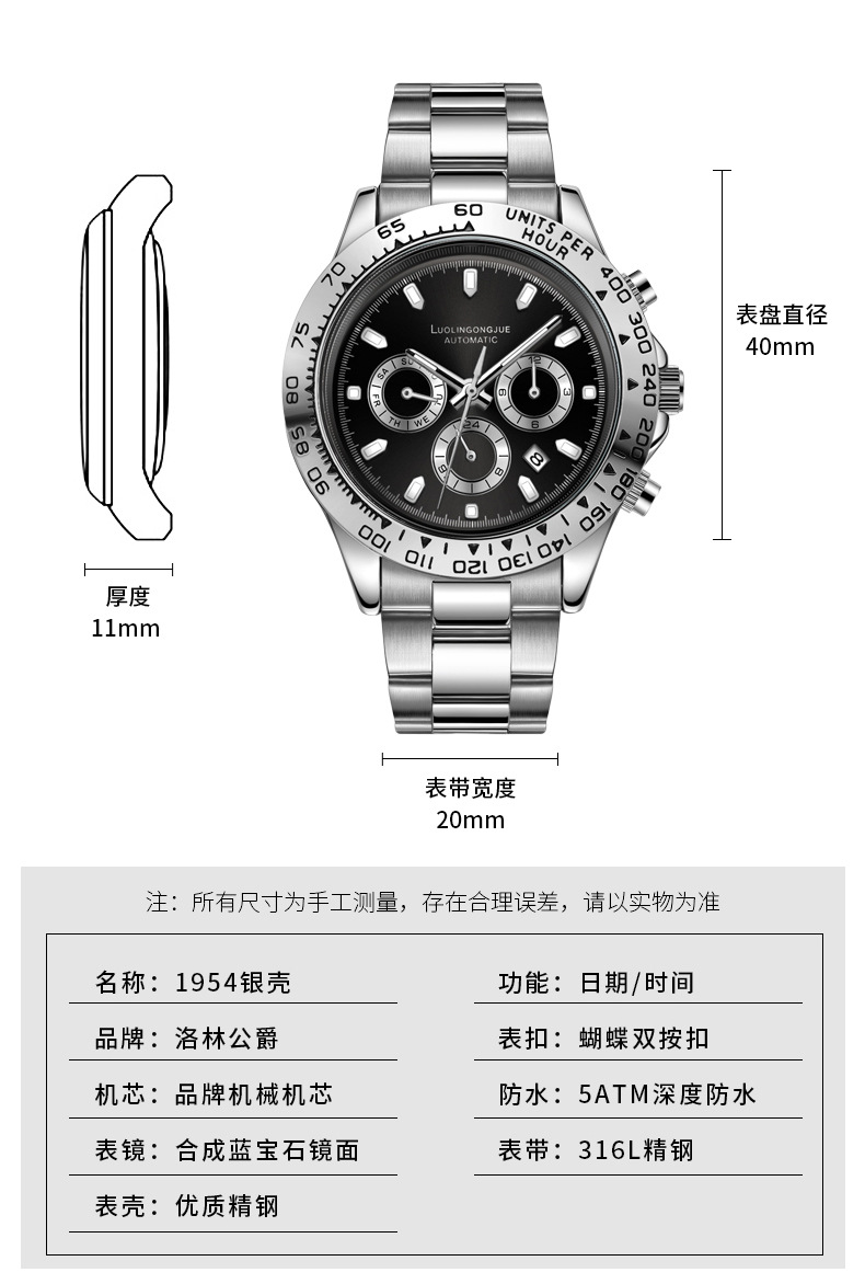 Reloj Mecánico Automático Duke of Lorraine 1954 TikTok Live, Multifuncional, Resistente al Agua, Luminoso, para Hombre, con Meteorito