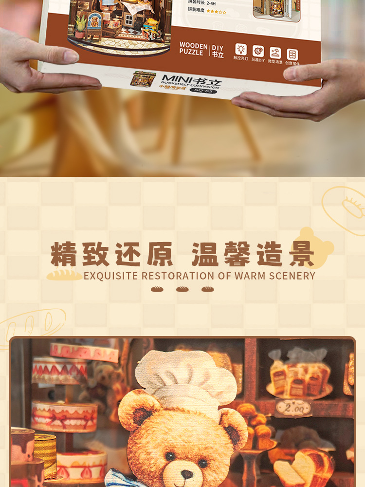 Libro nook ballena vacía varita mágica cabaña de bricolaje 3d montaje tridimensional luz nocturna libro de madera rompecabezas modelo de construcción