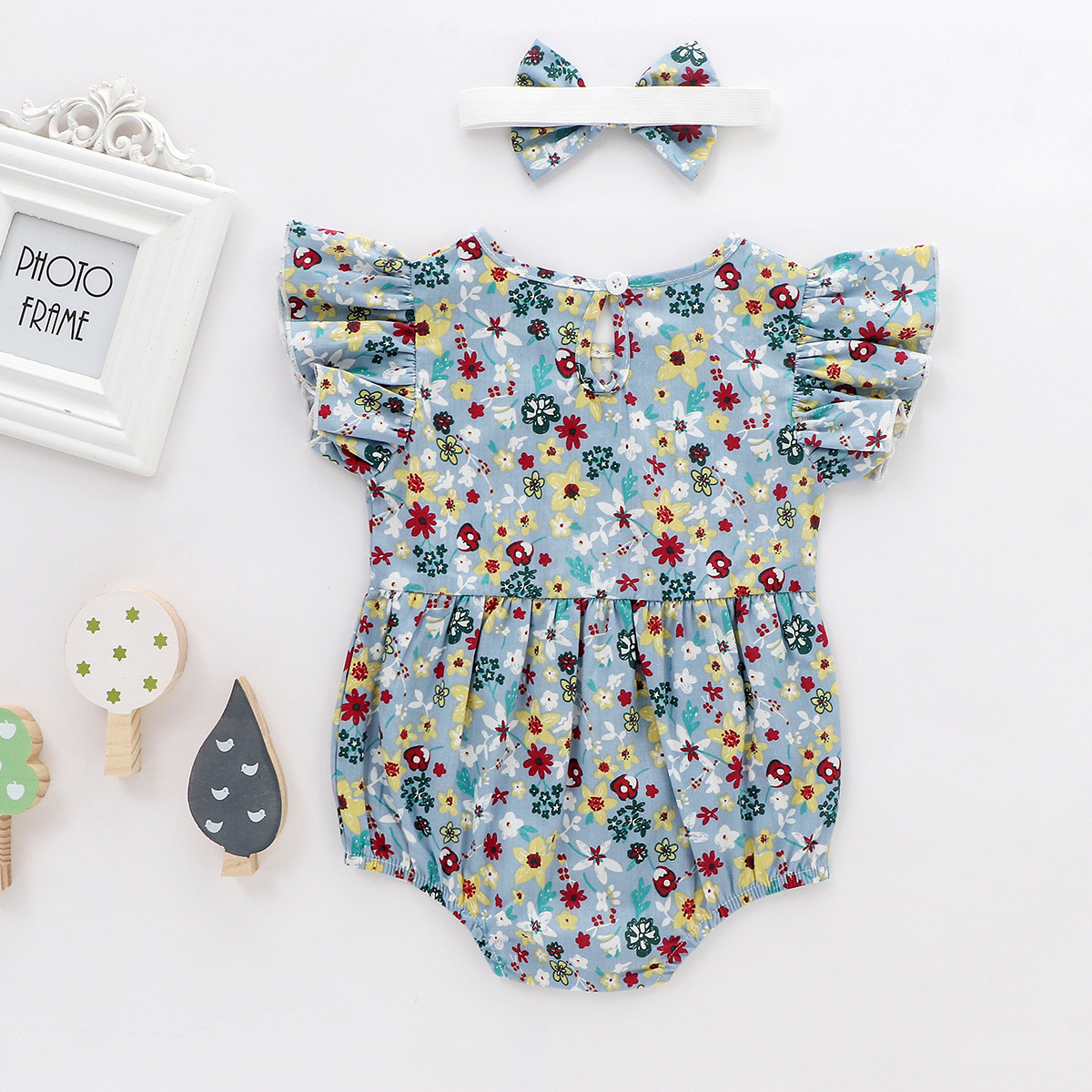 Nuevo multicolor 2022 verano recién nacido 0-2 años de edad floral manga de vuelo sin mangas mameluco bebé vaina triángulo gateando