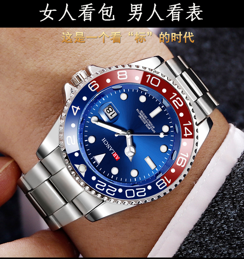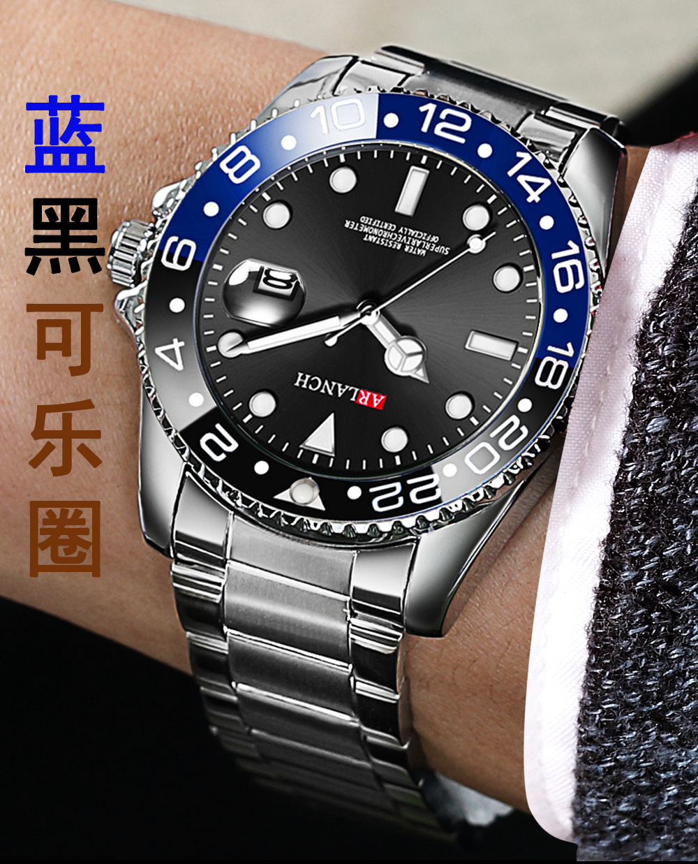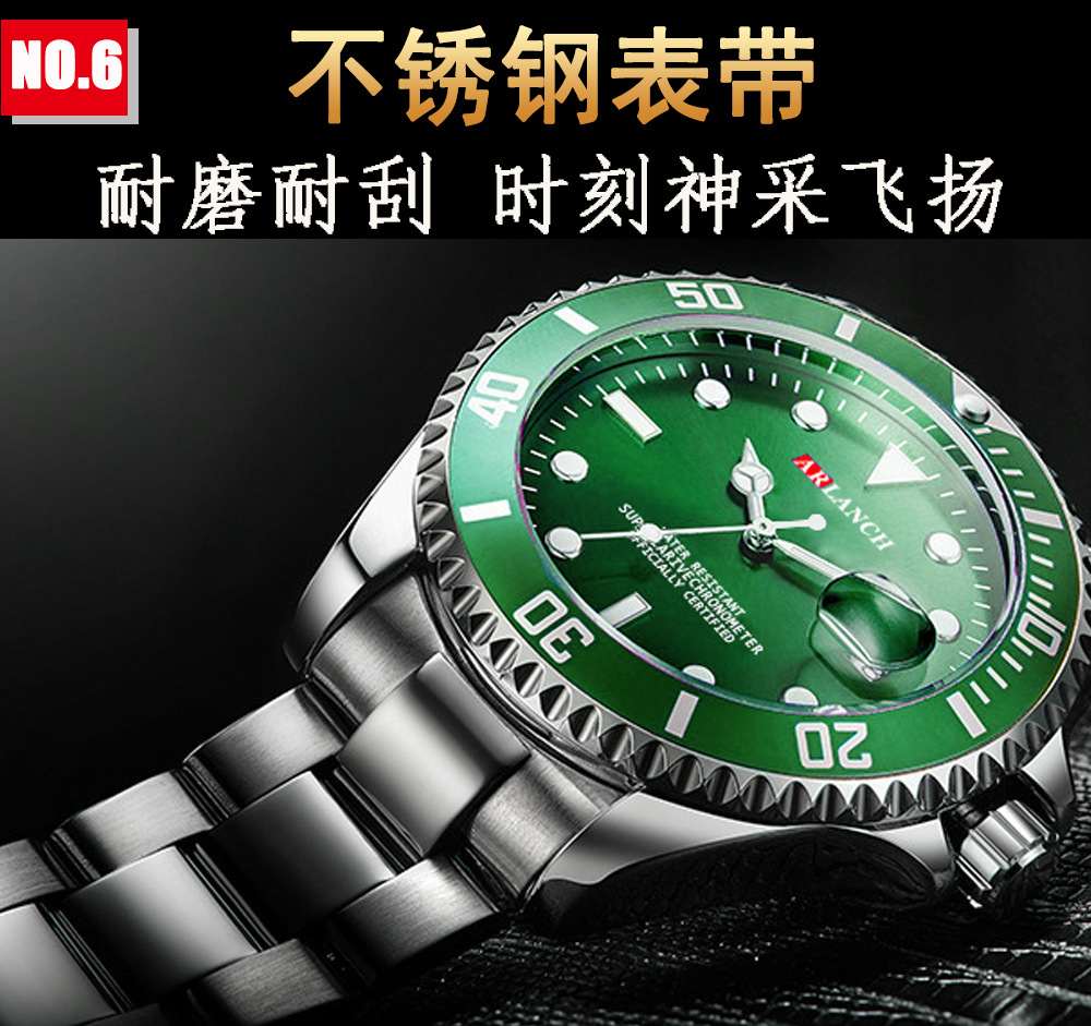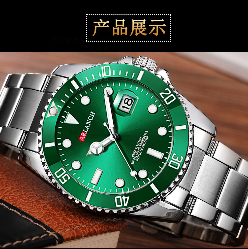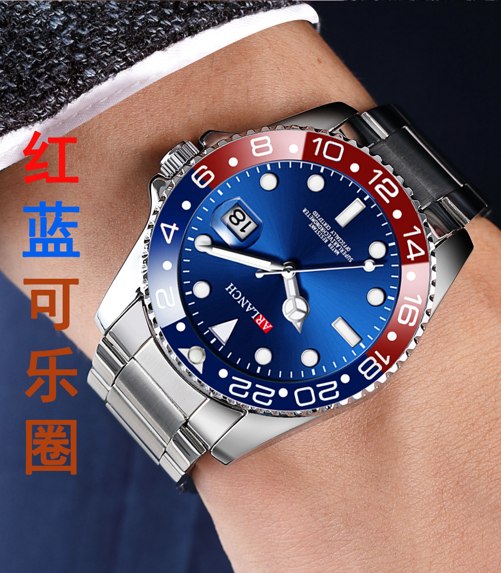 Reloj de acero inoxidable luminoso impermeable estudiante de moda reloj de acero inoxidable rojo azul cola Anillo Verde agua fantasma reloj de hombre
