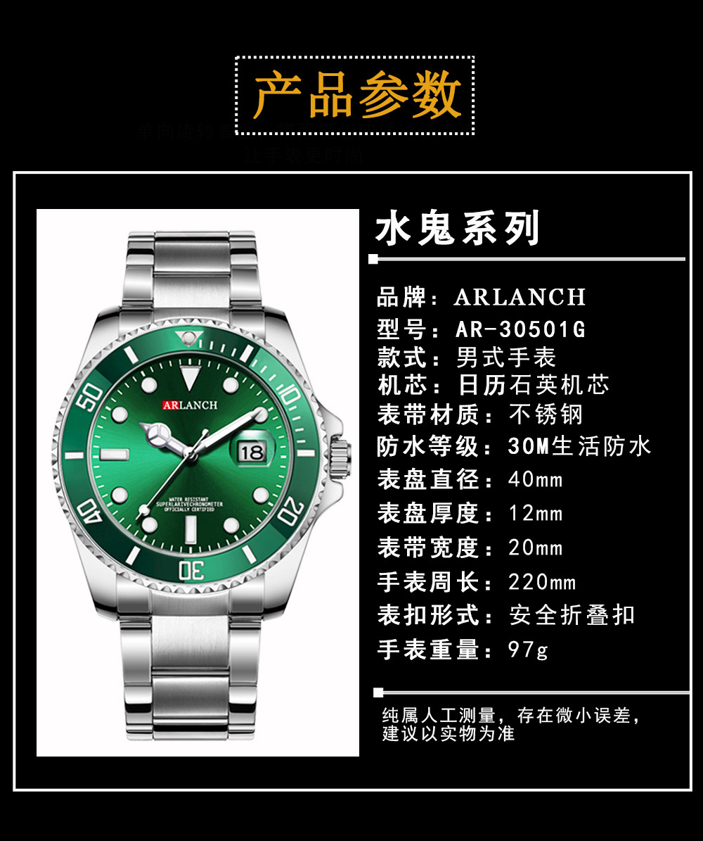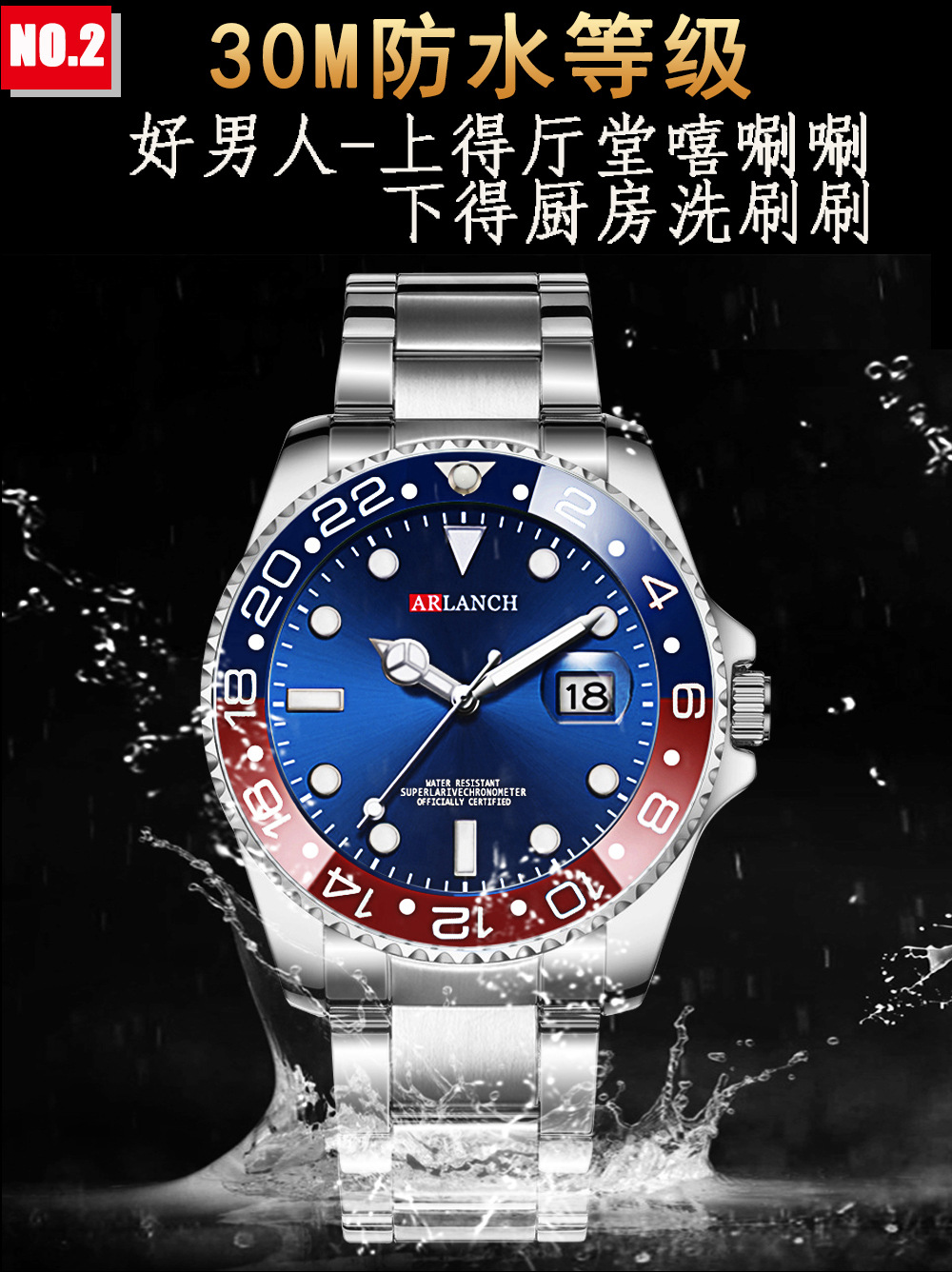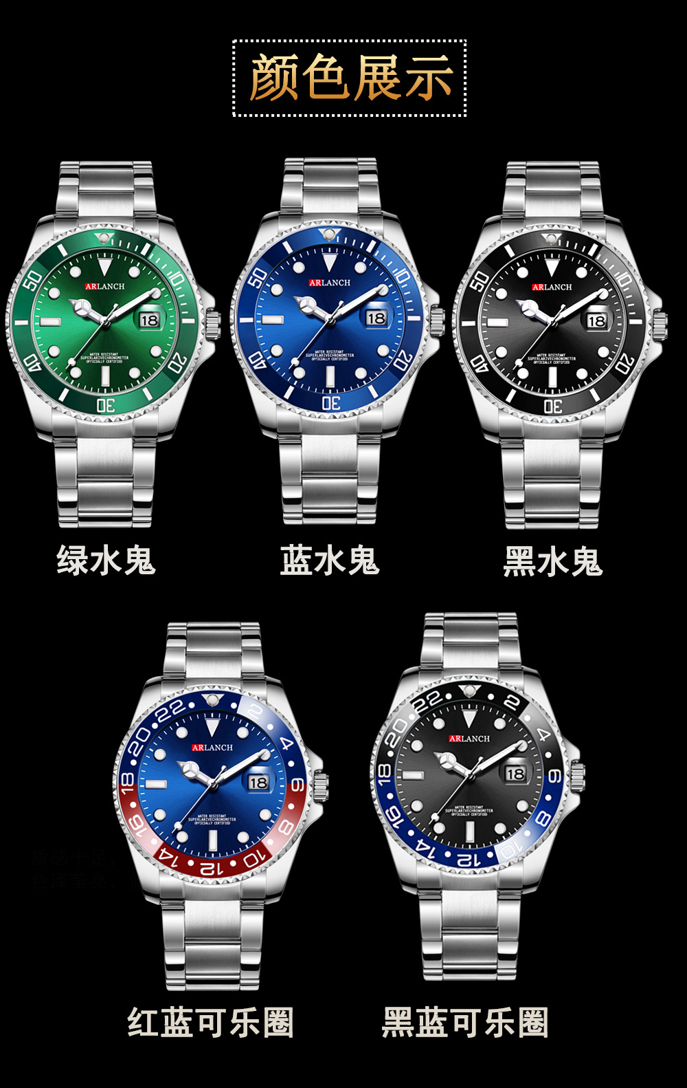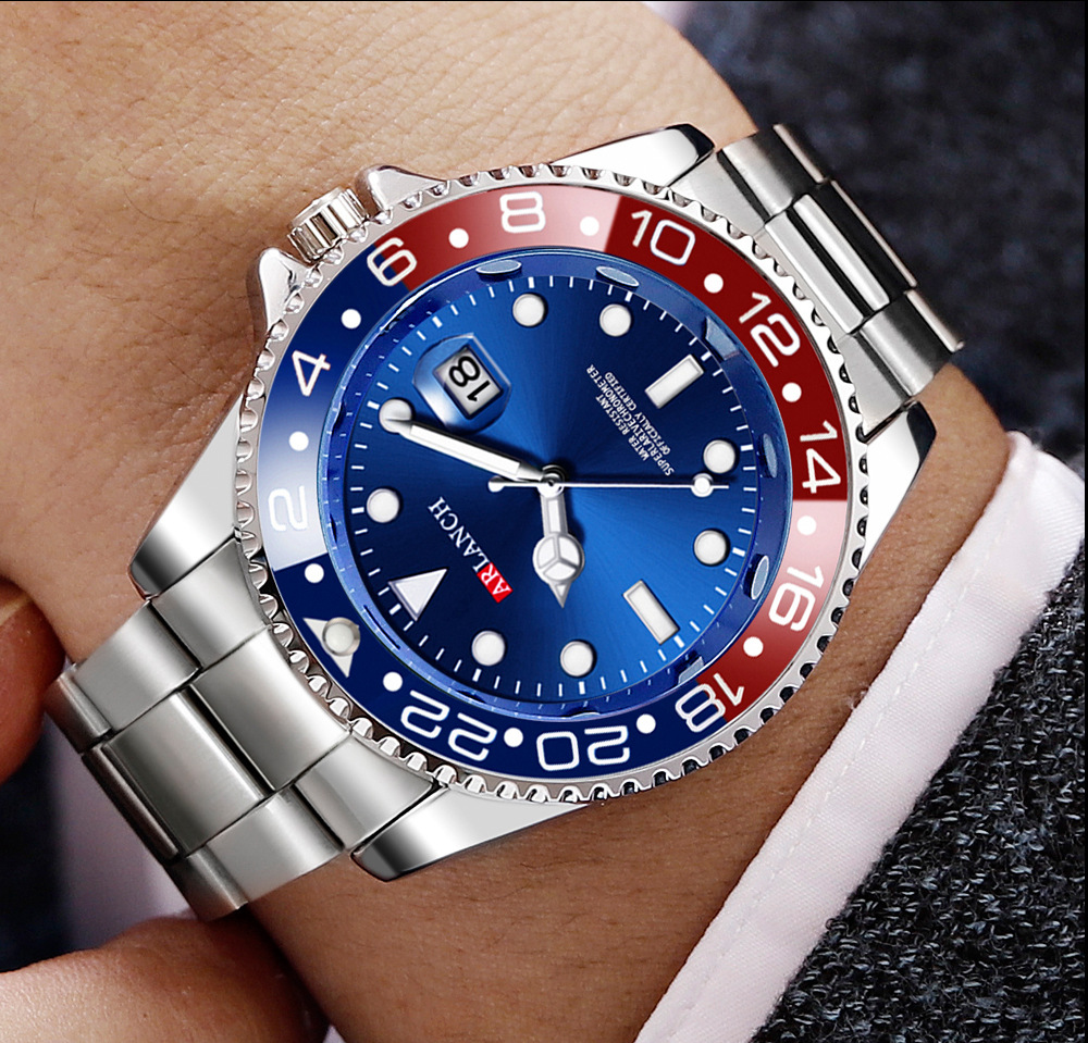 Reloj de acero inoxidable luminoso impermeable estudiante de moda reloj de acero inoxidable rojo azul cola Anillo Verde agua fantasma reloj de hombre
