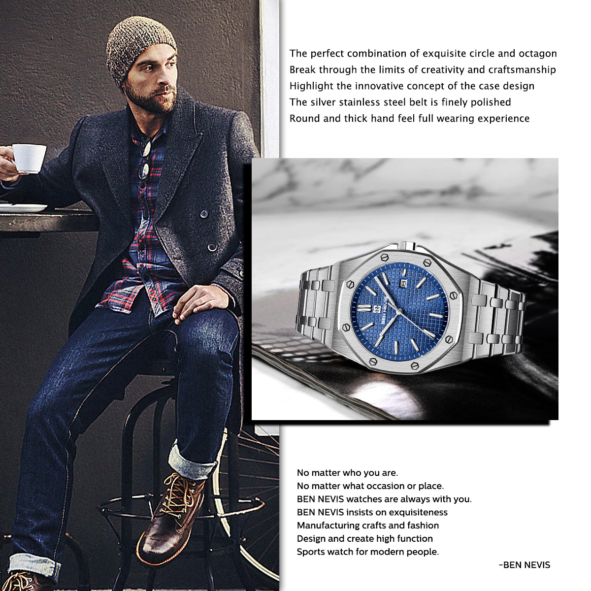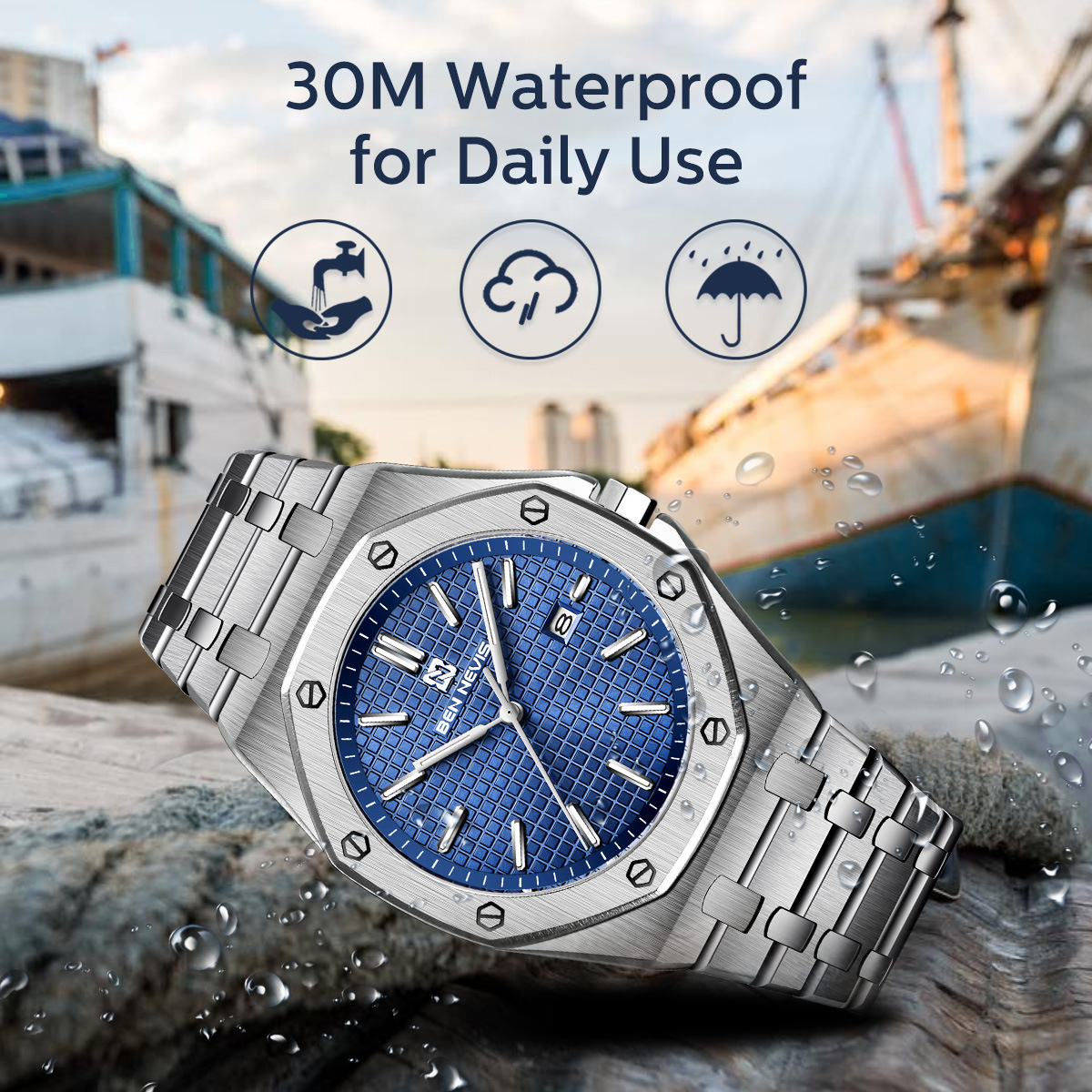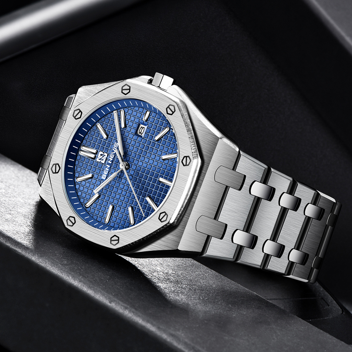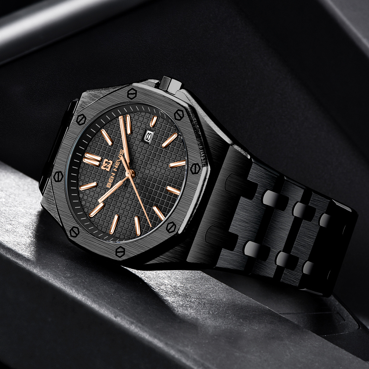 Reloj de cuarzo de alta gama para negocios, reloj multifuncional para hombre con correa de acero, reloj de moda de aleación de alta gama para hombre, modelo BN3018G.