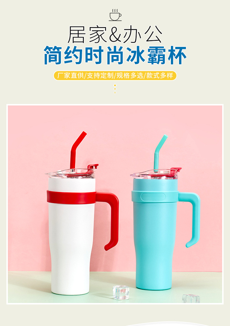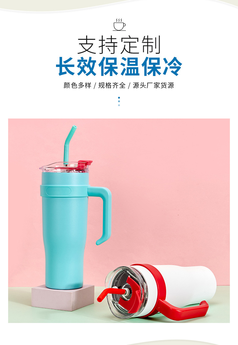 Transfronterizo nuevo 304 mango de acero inoxidable taza de coche de gran capacidad con paja taza de helado taza de vacío portátil