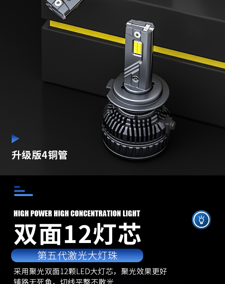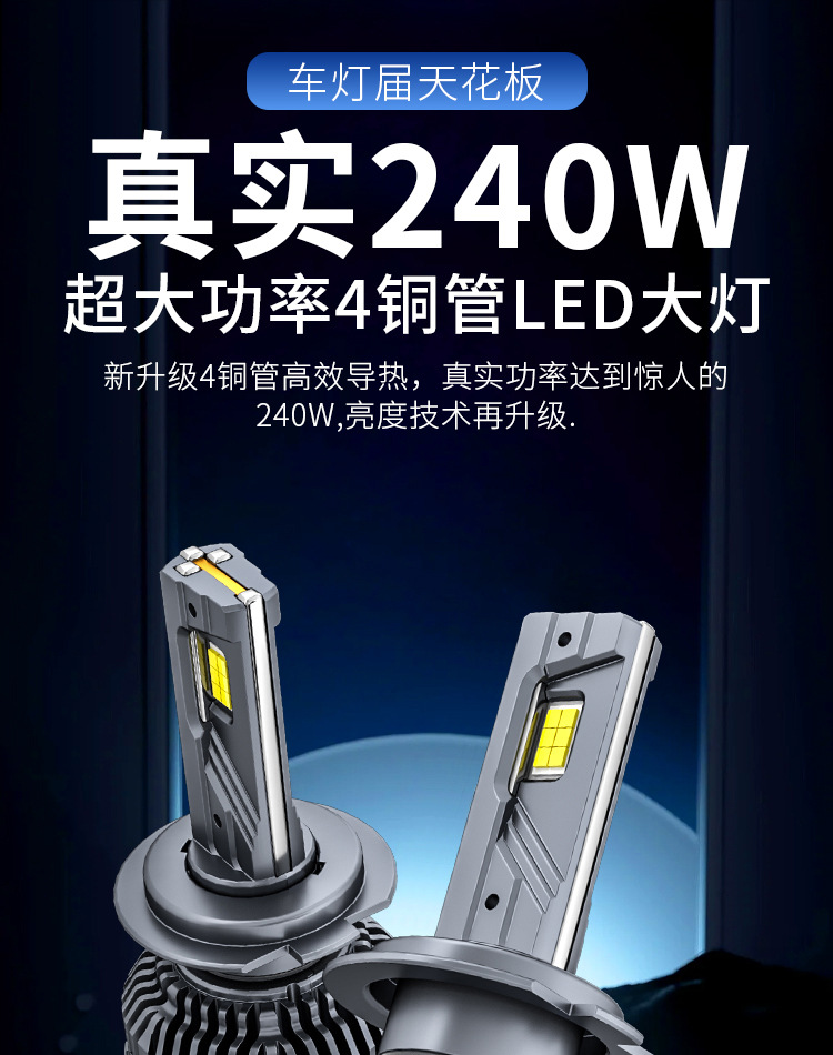 Transfronterizo nuevo 240w4 tubo de cobre lámpara de coche H4H11 cuatro tubo de cobre coche LED faro H7 coche faro