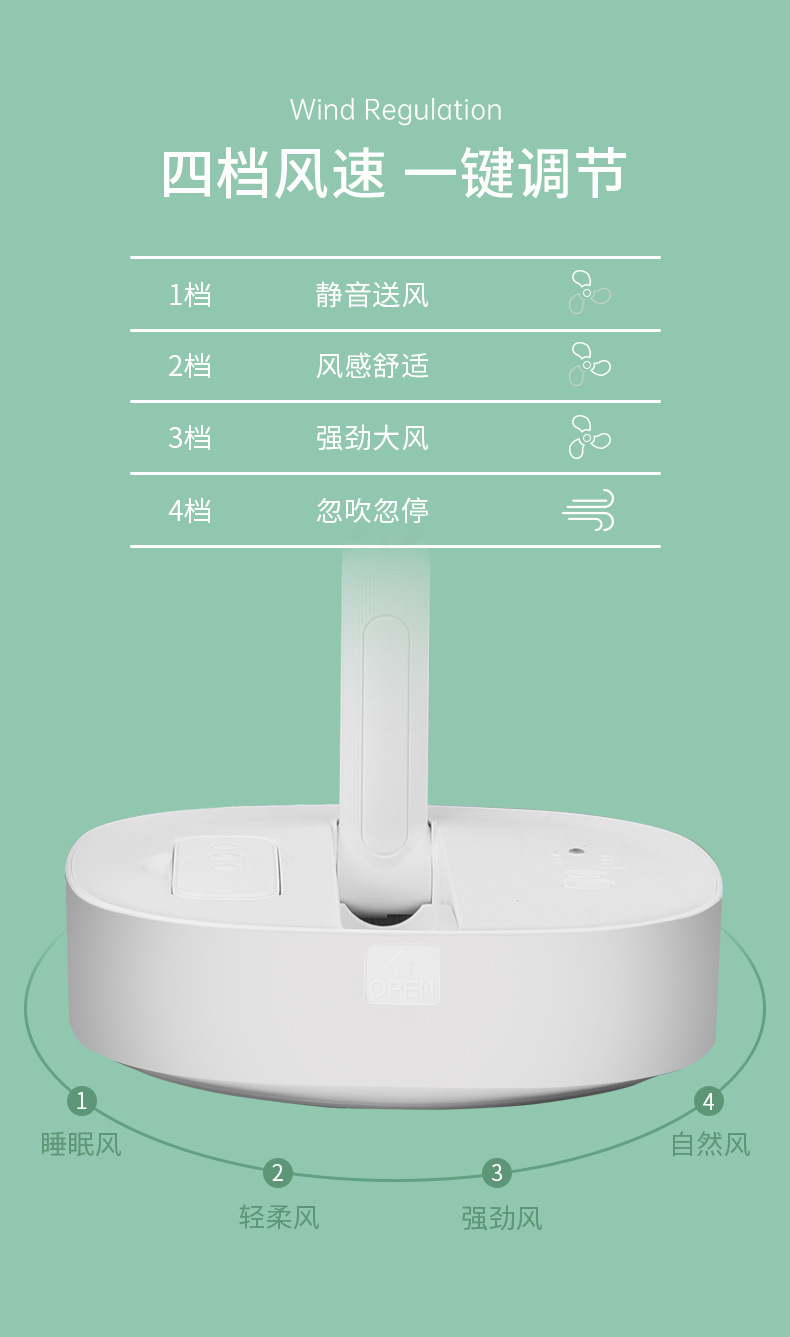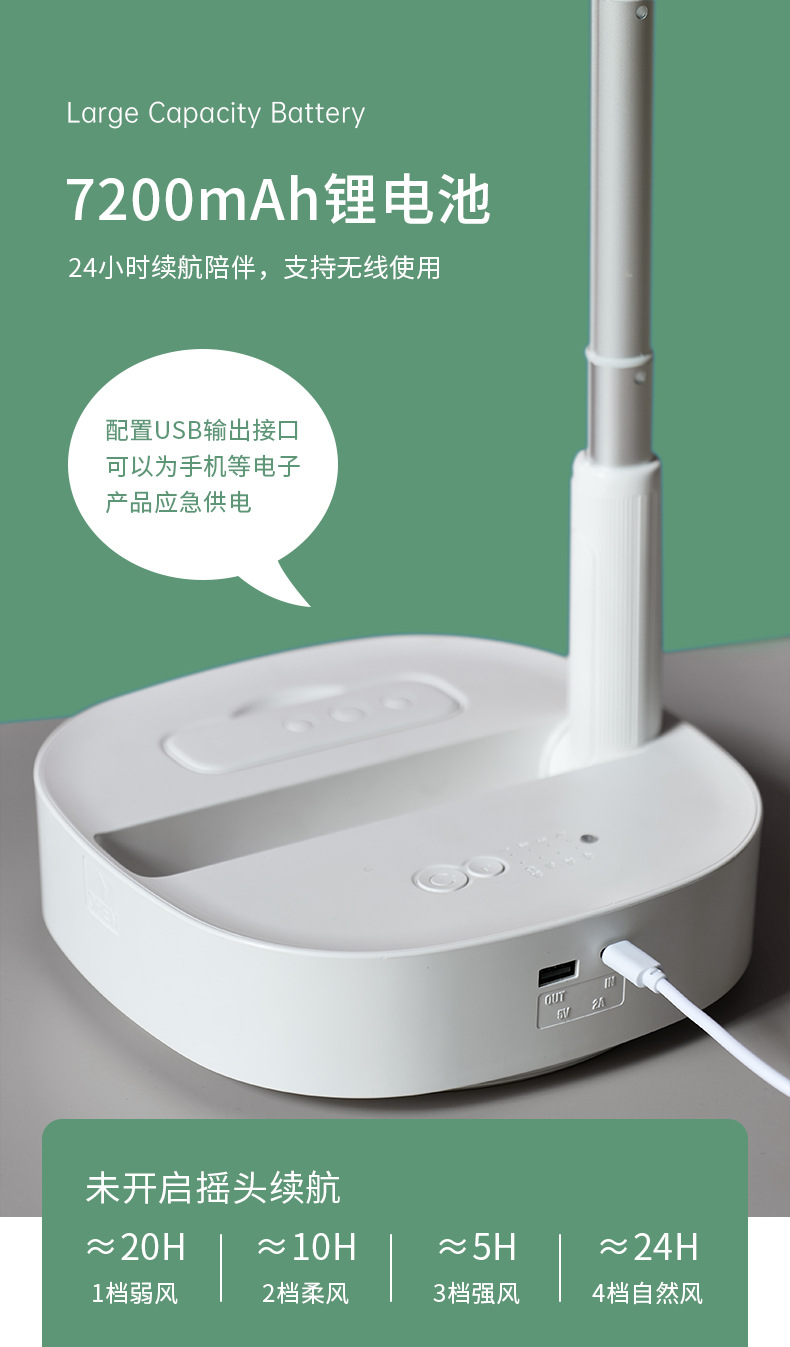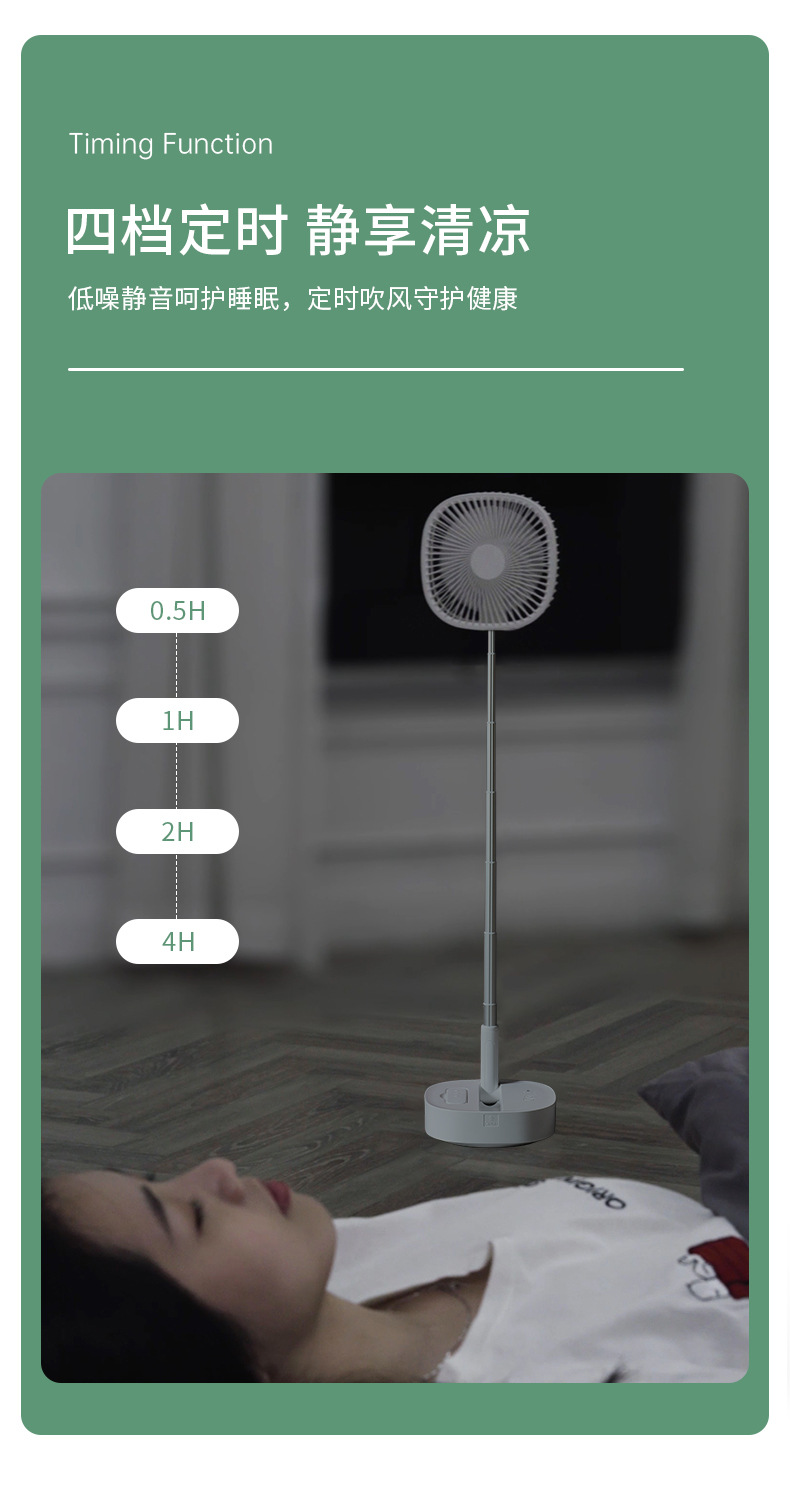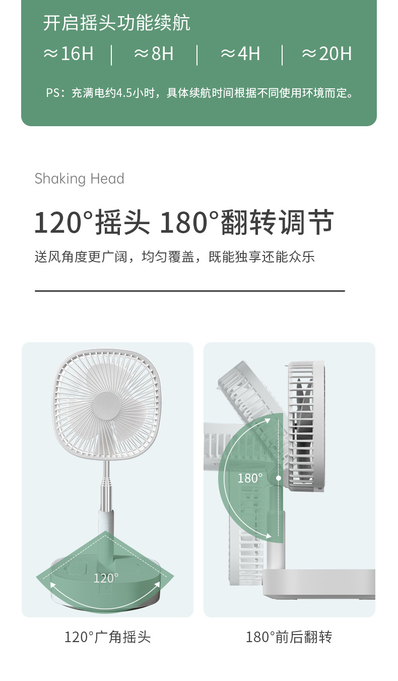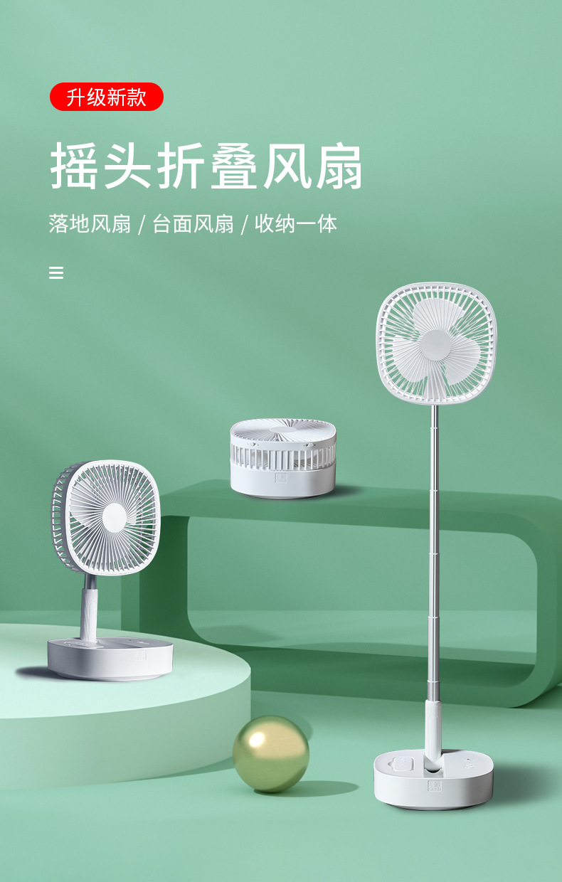 Ventilador plegable telescópico de 8 pulgadas sacude la cabeza, carga USB, ventilador de piso de escritorio portátil, temporizador remoto, silencioso al aire libre
