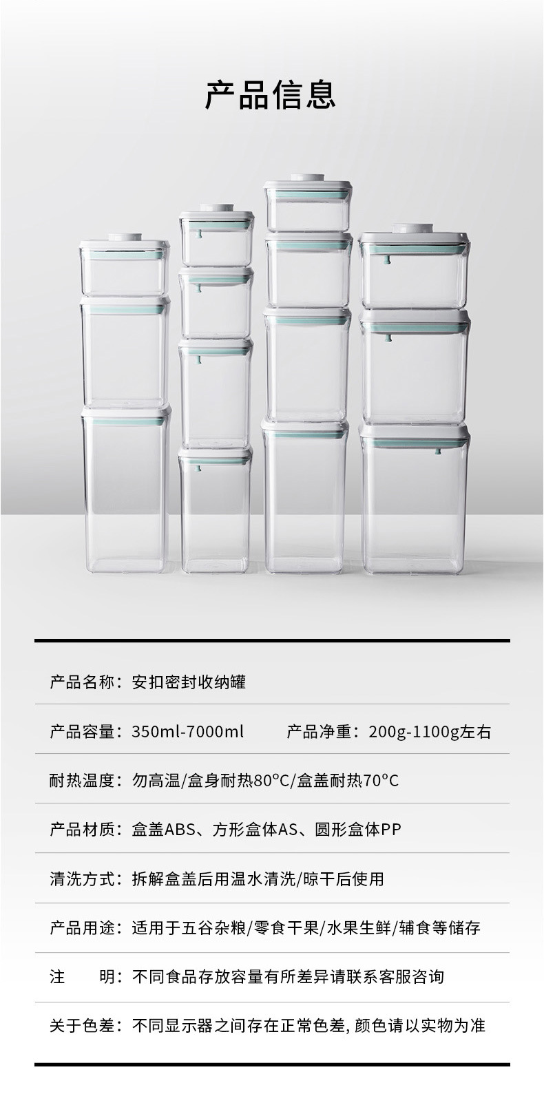 Caja de almacenamiento de conservación de seguridad Aperitivos de cocina Tanque de almacenamiento de productos secos Caja sellada de granos integrales Tanque sellado a prueba de humedad de alimentos