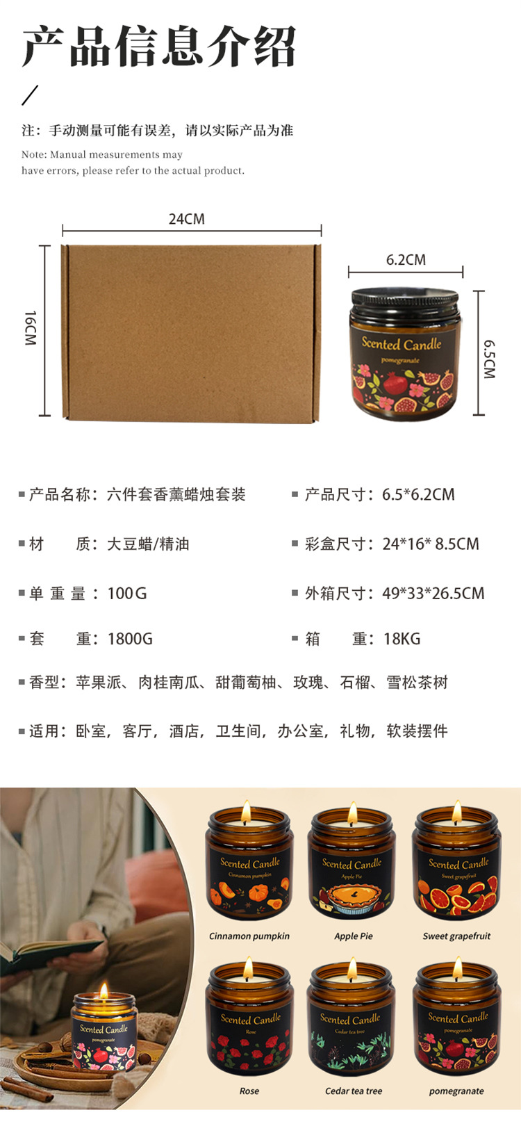 Velas aromáticas transfronterizas Seis regalos Kit Casa creativa sin humo Velas de fragancia de cera de soja con regalos al por mayor