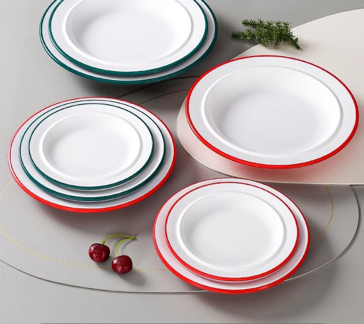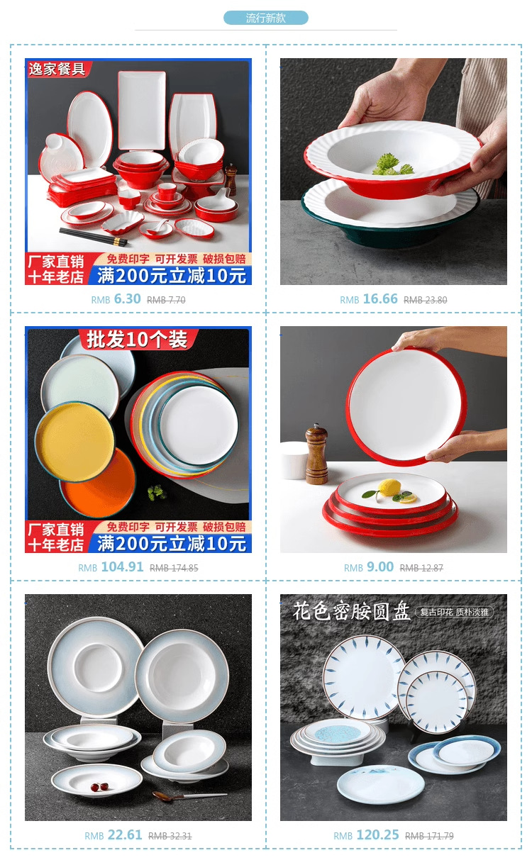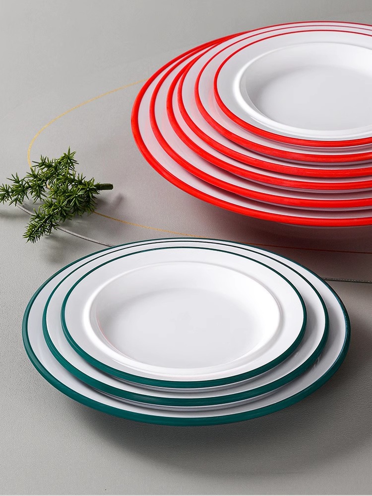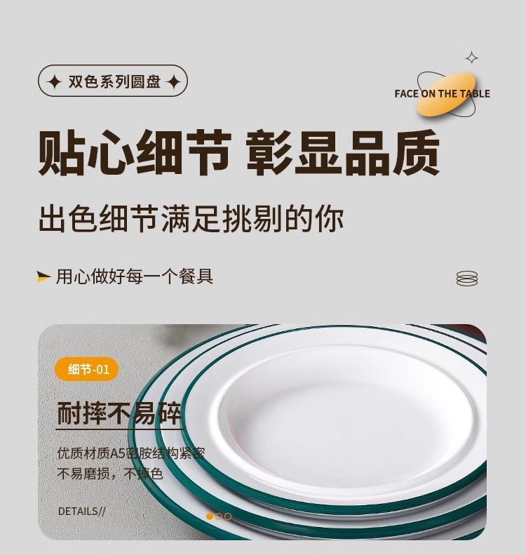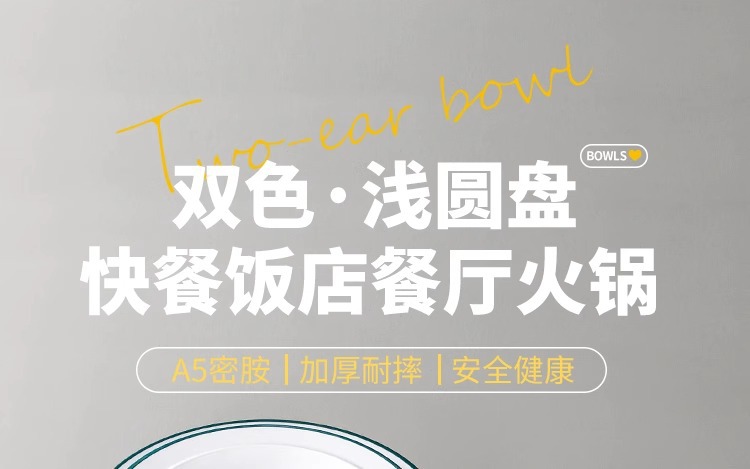 Platos de melamina de dos colores, restaurantes comerciales, fideos de fideos, carne de filete, platos de porcelana, panelas calientes, platos de barbacoa japoneses