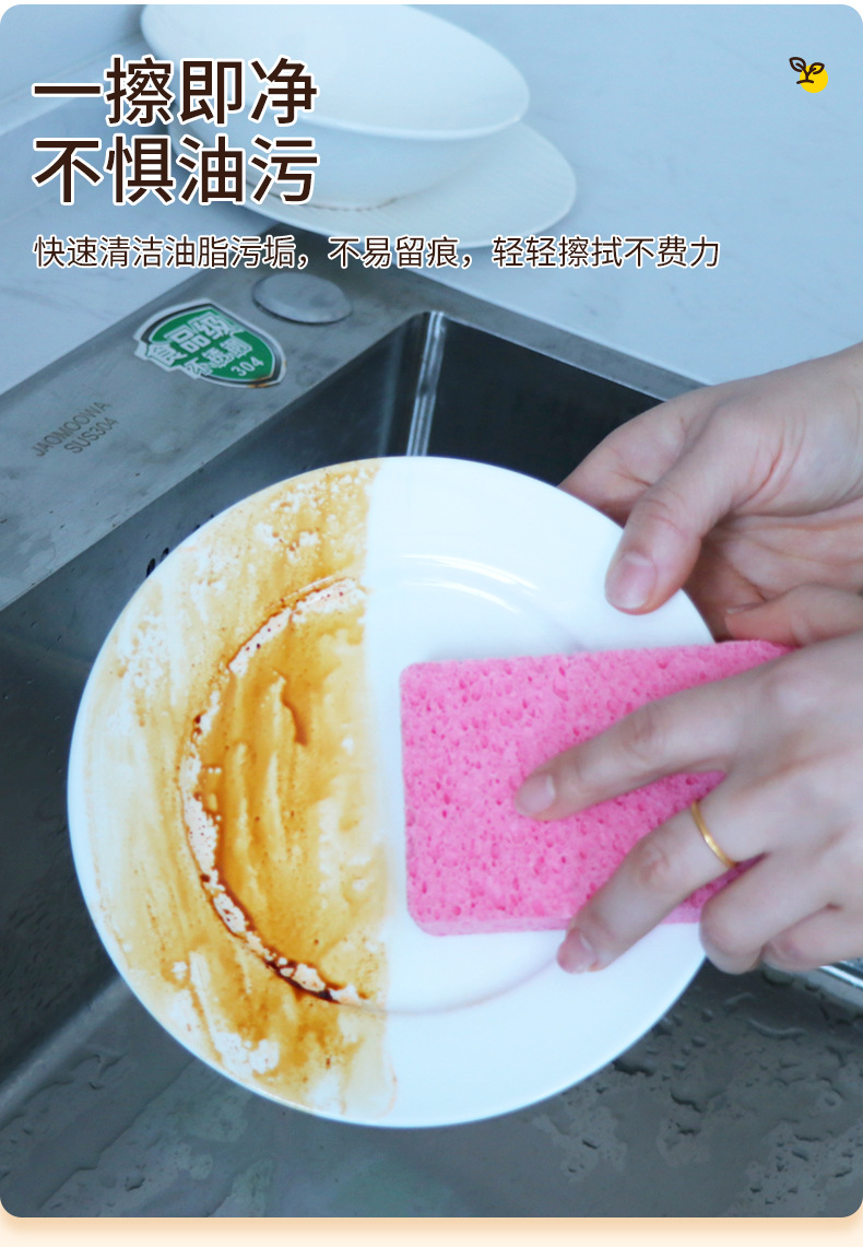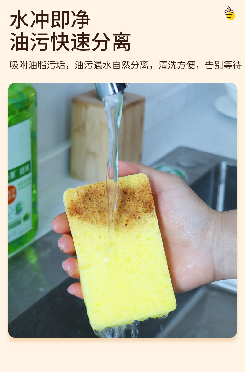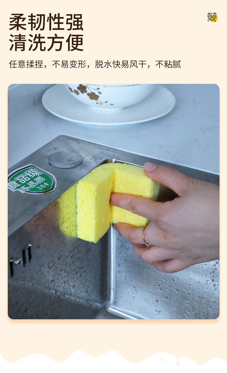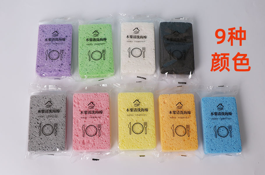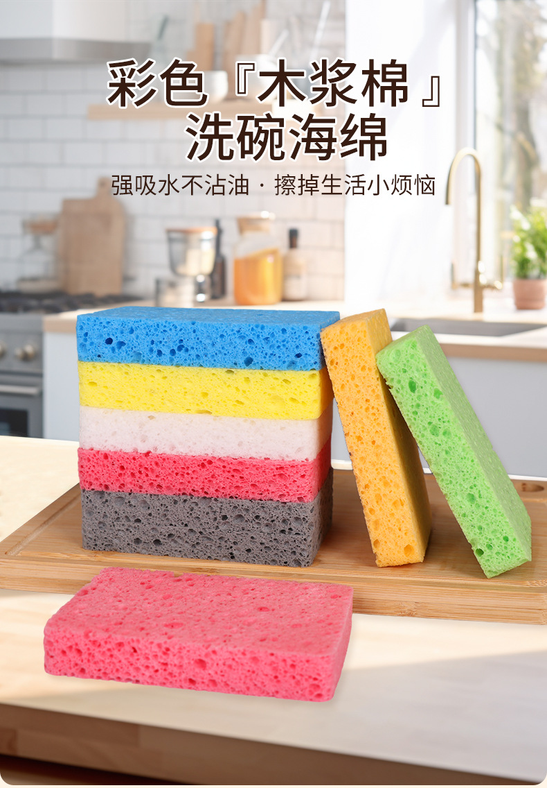 Pulpa de madera natural, lavado de platos de algodón, esponja, limpieza de cocina, bloque de esponja absorbente de agua, cepillo antiadherente, tazón, esponja de pulpa de madera de color