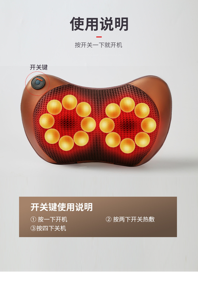 Comercio exterior multifuncional eléctrico columna cervical masaje almohada hombro cuello cintura hogar cuello coche de doble uso transfronterizo amasado masajeador