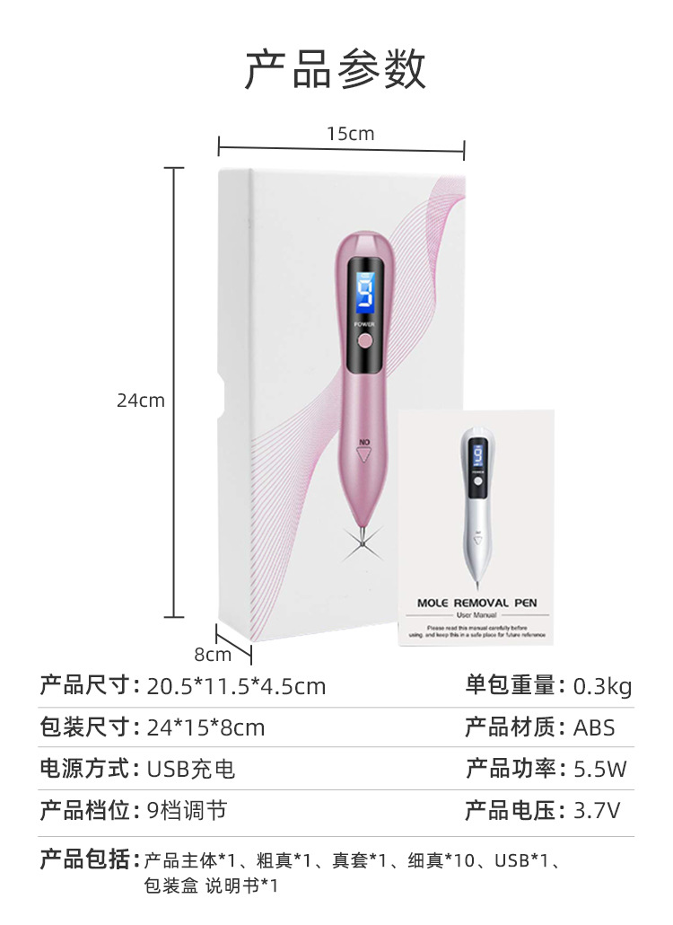 Lápiz alemán de 9 niveles para eliminación de lunares con luz azul, dispositivo portátil de belleza para uso doméstico, lápiz pequeño para eliminar manchas blancas