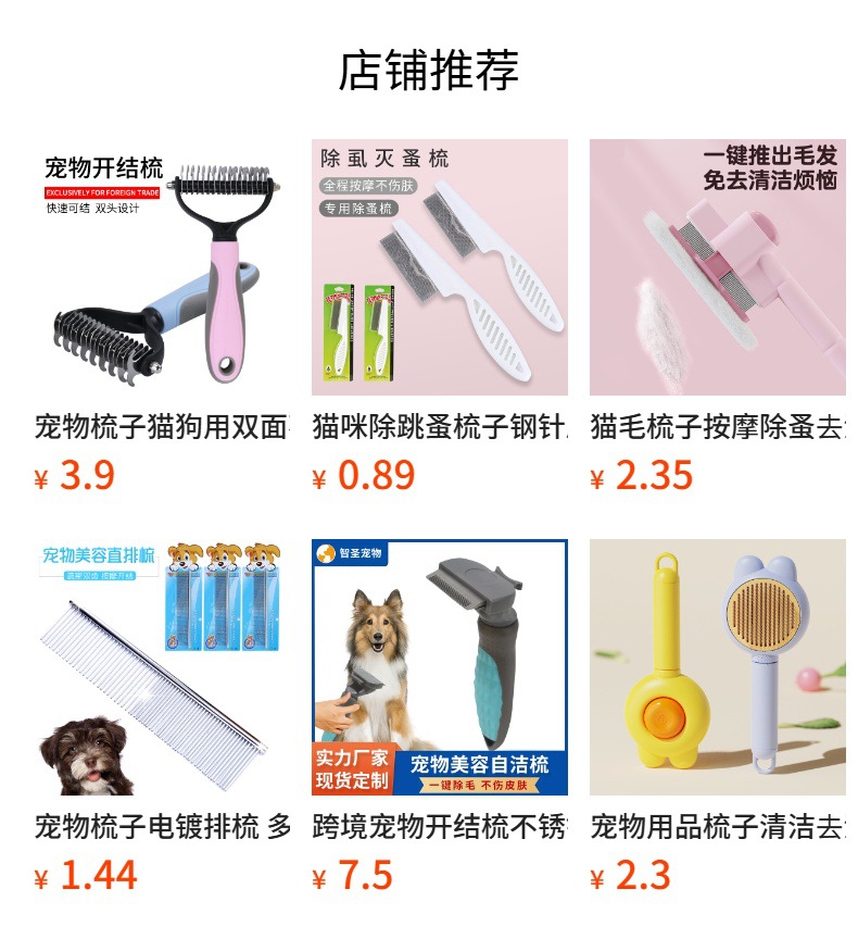 Suministros para mascotas Amazon popular mascota peine de eliminación de pelo automático nudo abierto peine de masaje peine de gato peine de perro
