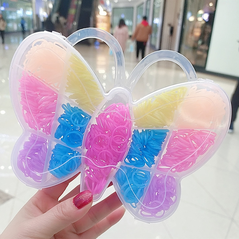 Nueva cuerda de pelo de las niñas de semillas de marca australiana mariposa en caja banda de pelo desechable banda de goma para niñas