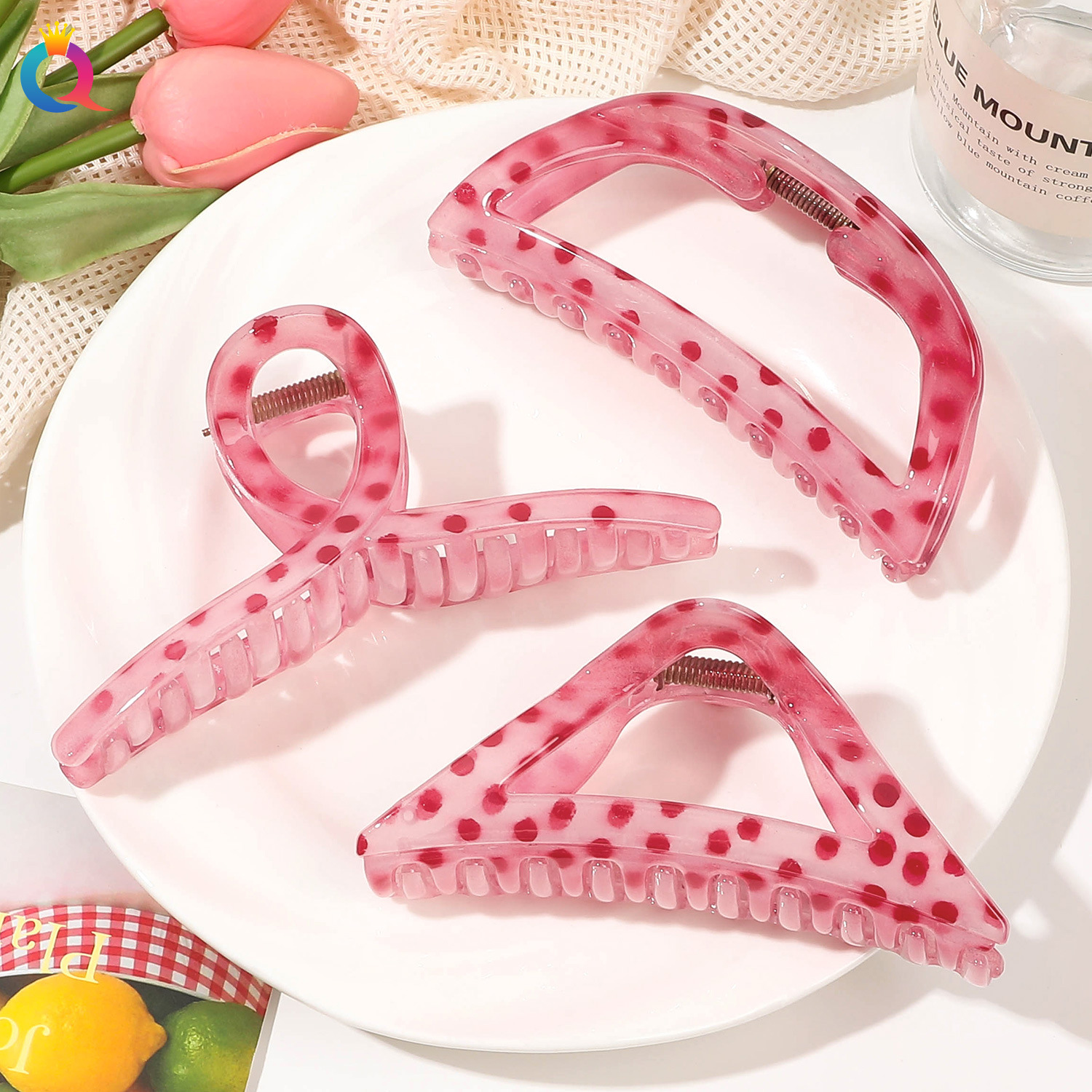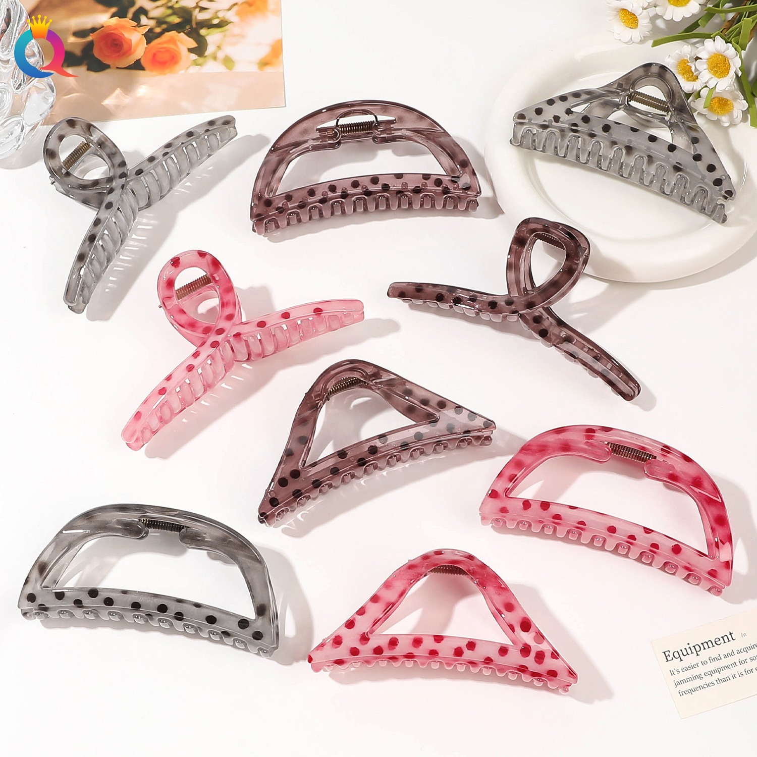 Qiyue Cross-border PC lunares gelatina horquilla de disco pinza para el cabello sensación de alta calidad horquilla de moda clip de tiburón accesorios para el cabello al por mayor