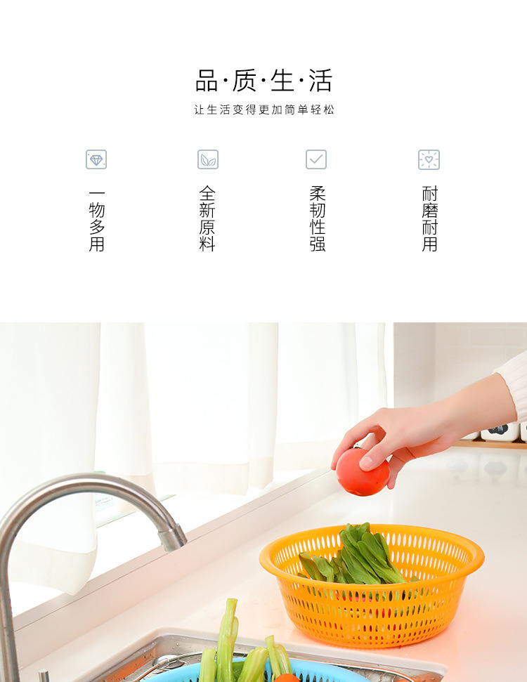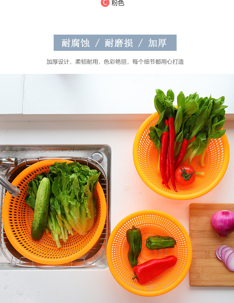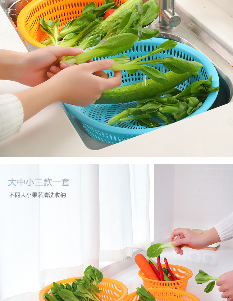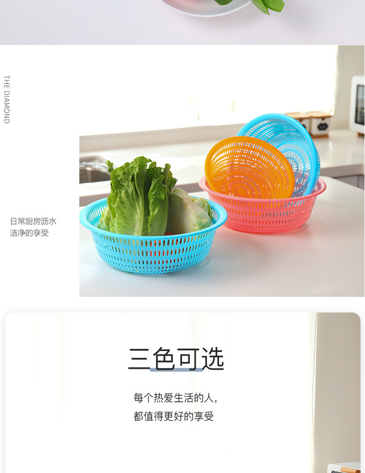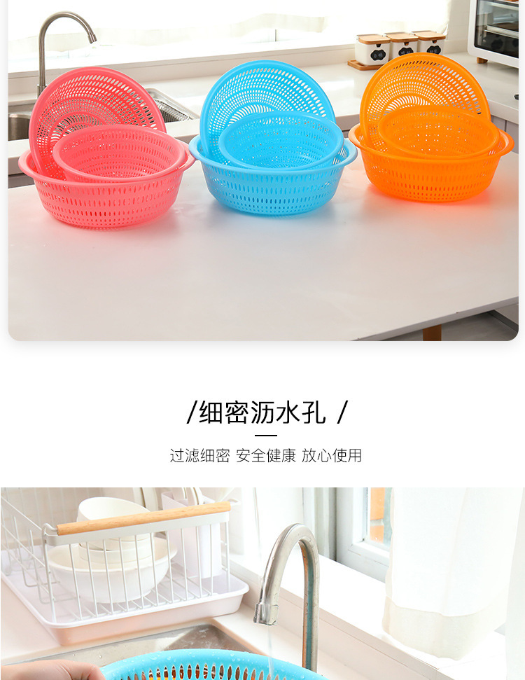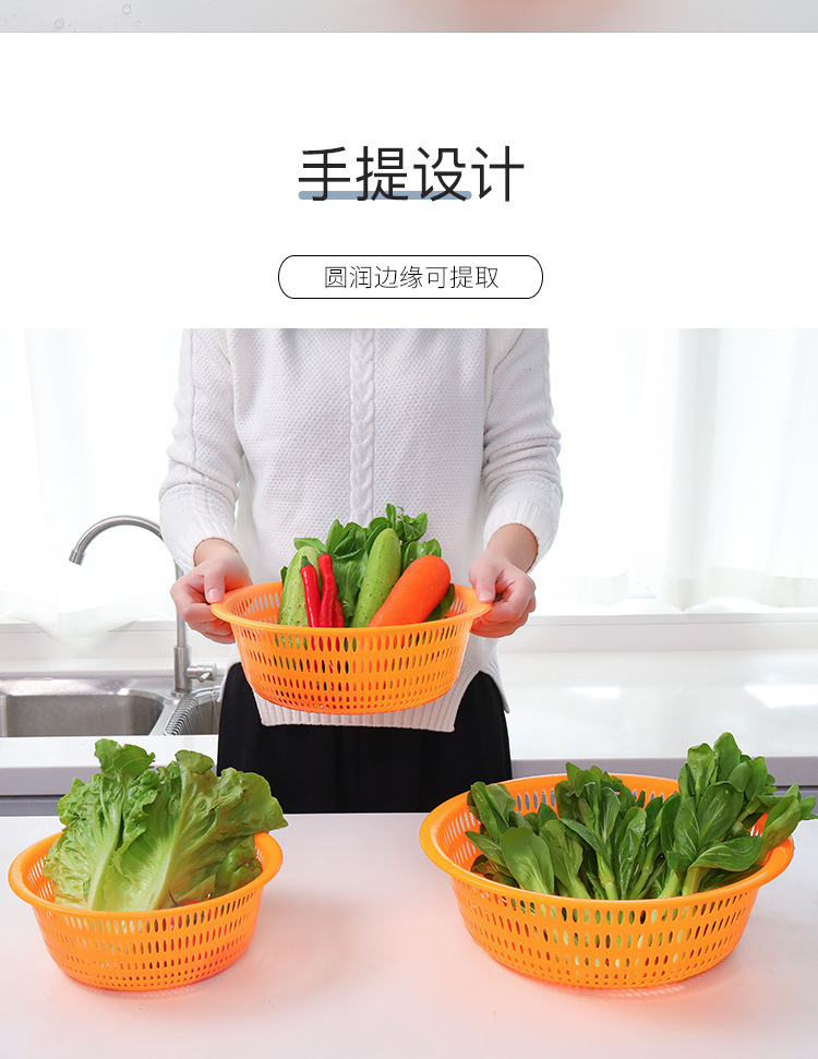 Cesta de lavado de verduras redonda de plástico grueso doméstico de almacenamiento de frutas y verduras Cesta de limpieza de cocina multifuncional Cesta de drenaje de agua en stock