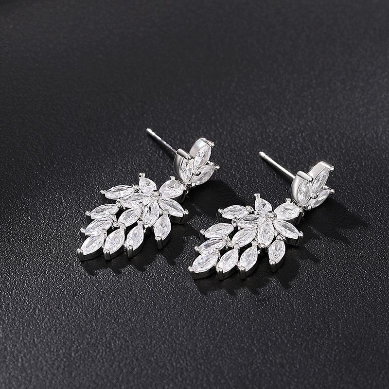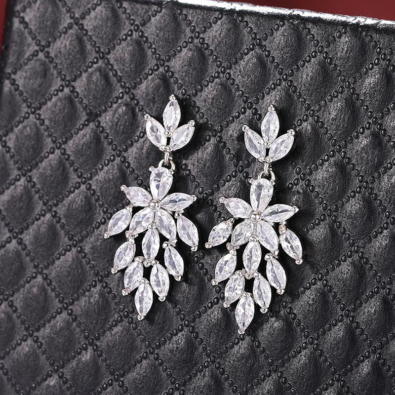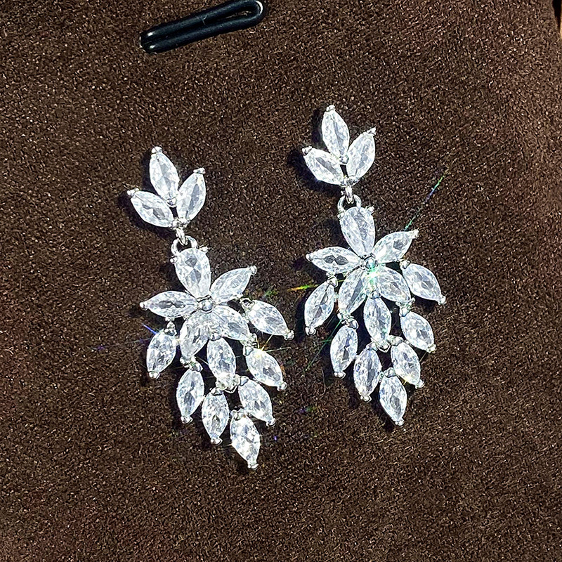 Huitan nuevo ligero aretes de lujo, temperamento femenino, de novia de hojas de árbol, joyas