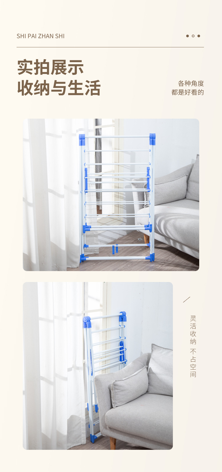 Perchero plegable tipo ala – Sin instalación – Para balcón y habitación