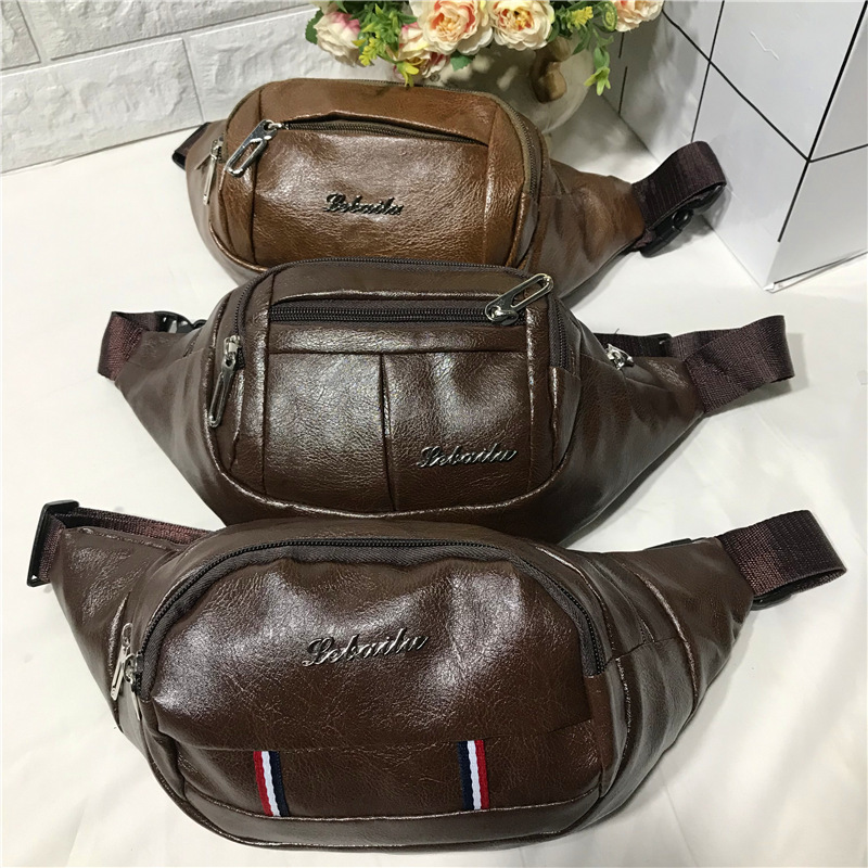Bolso de cintura para hombre de cuero PU, bolso cruzado pequeño, multifuncional y ligero, venta al por mayor