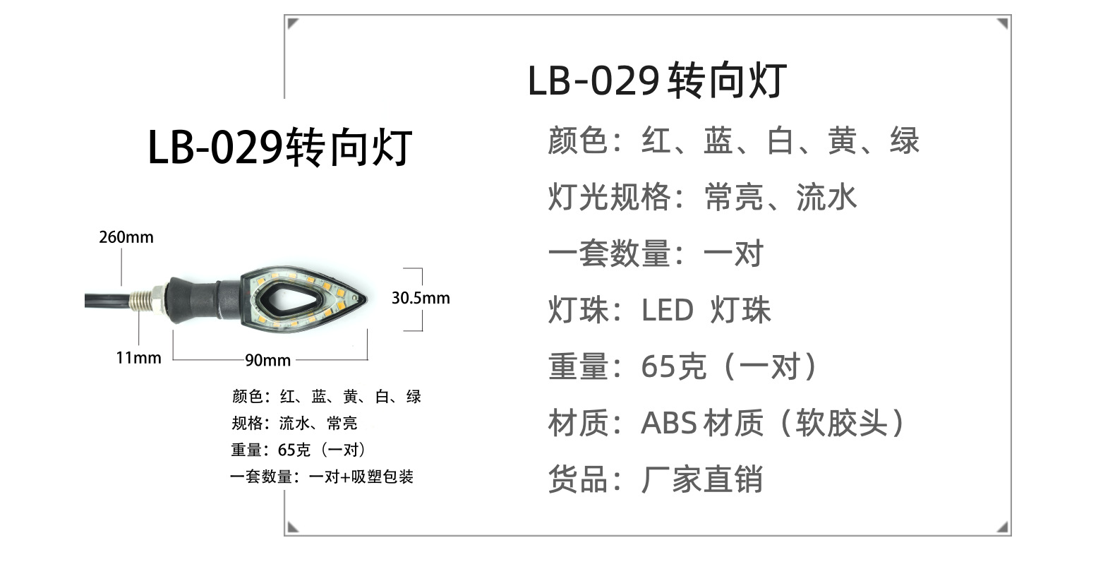 | Uso | Decoración de luces de dirección para motocicletas y vehículos eléctricos |