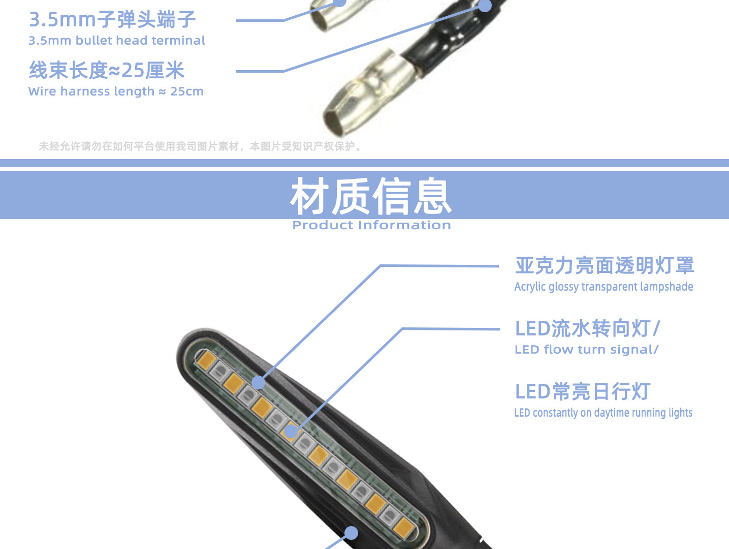 | Nombre del producto | Motocicleta de agua corriente de la luz de giro LED12V |