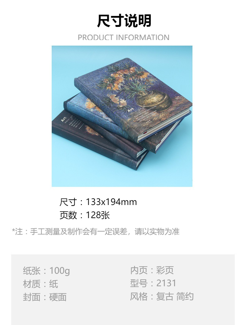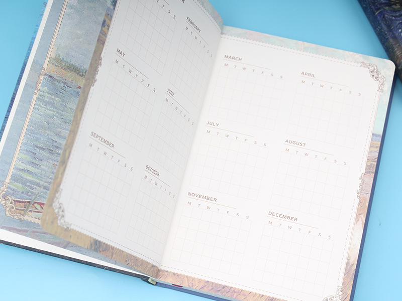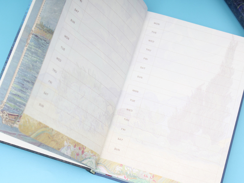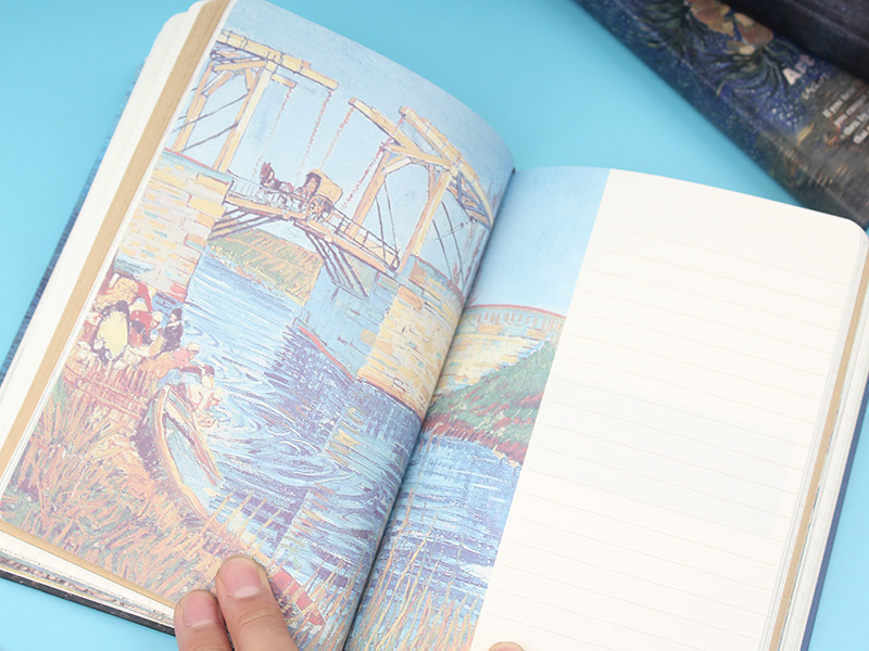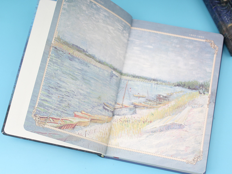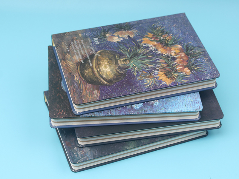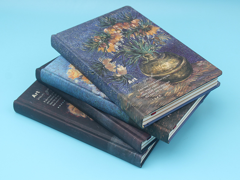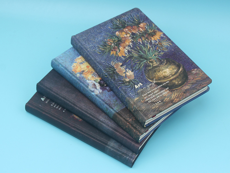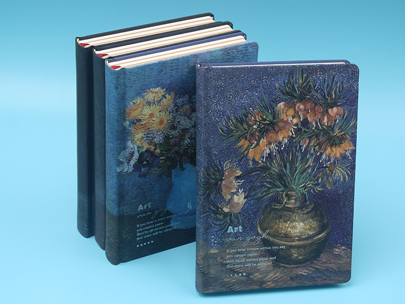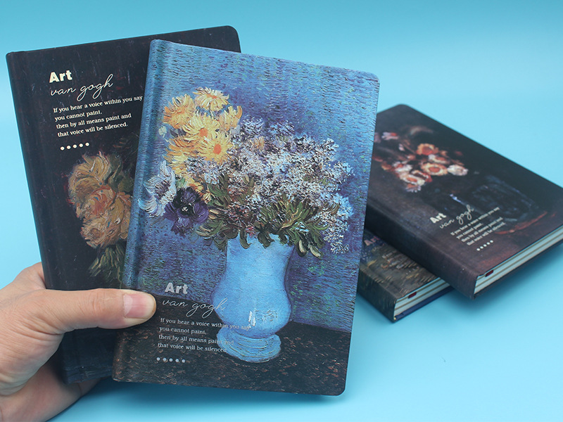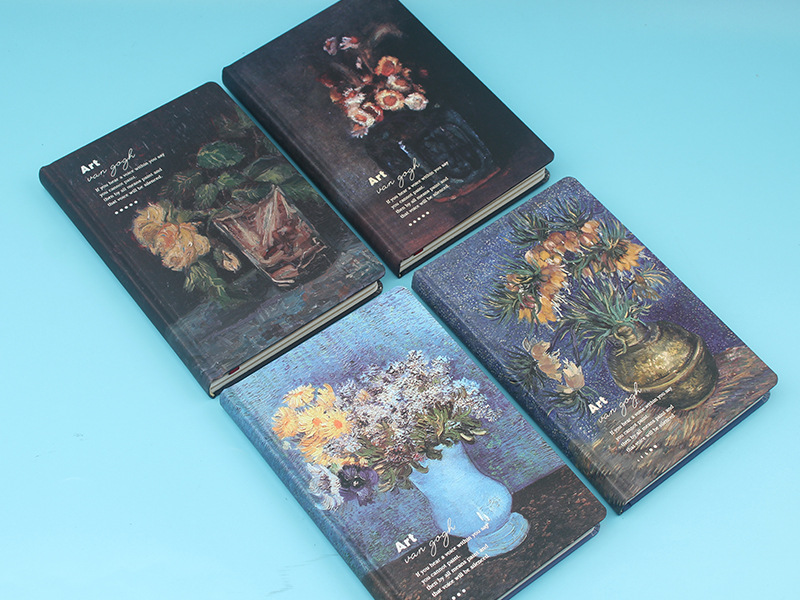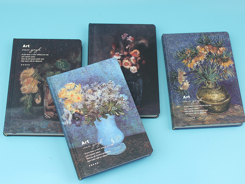 Cuaderno artístico de tapa dura con diseño floral inspirado en Van Gogh y Monet, ideal como diario o bullet journal