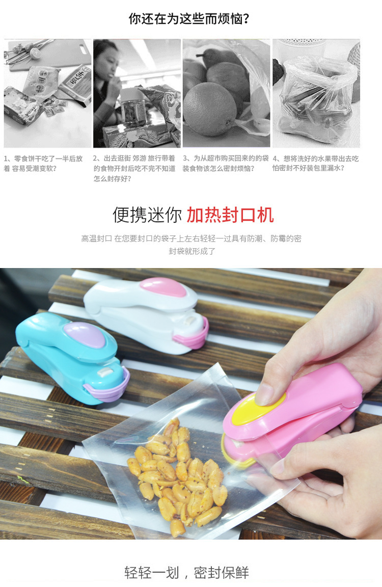 Hogar portátil mini bolsa de plástico máquina de sellado snack pequeña presión de mano máquina de sellado de calor máquina de sellado de plástico clip de sellado venta al por mayor