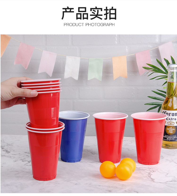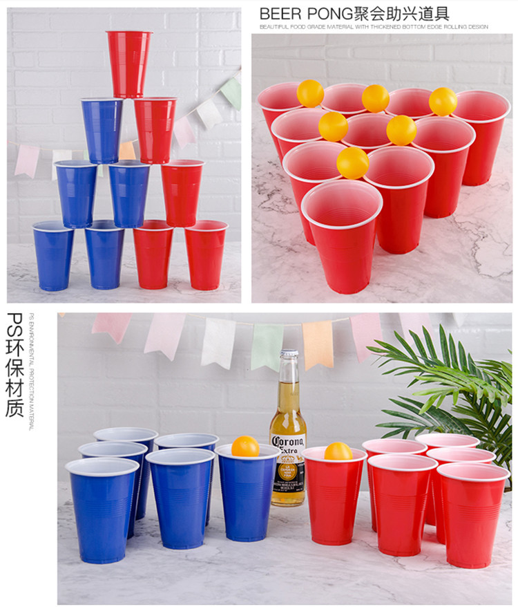 Copa de fiesta de tenis de mesa de cerveza americana Taza de plástico desechable 16oz Taza bicolor Taza Juego de fiesta Taza en solitario