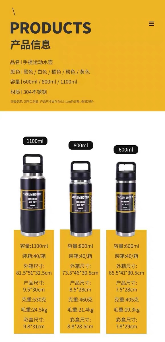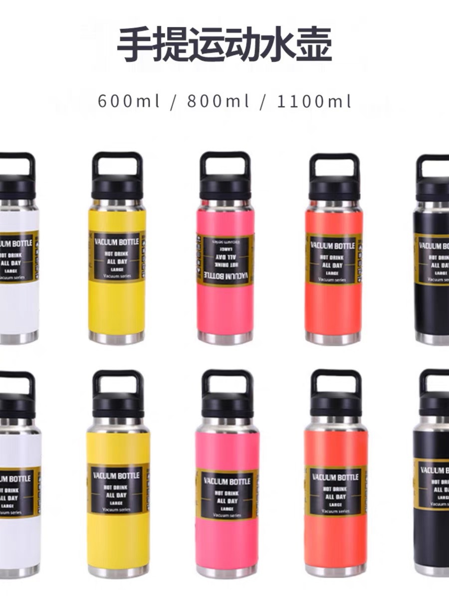 Taza termo de acero inoxidable 304 transfronteriza para deportes al aire libre olla espacial de montañismo al vacío de doble capa portátil de gran capacidad