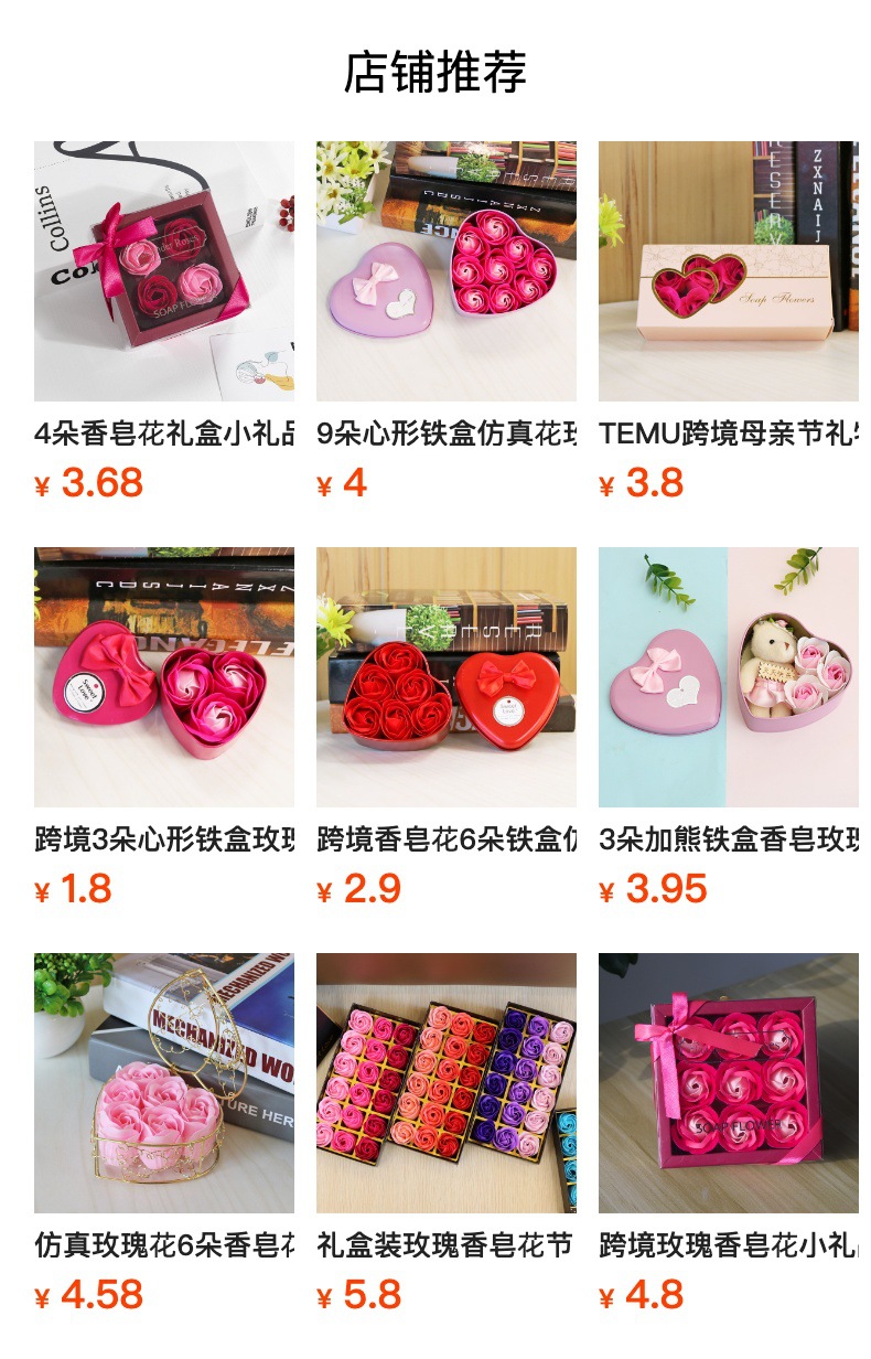 Transfronterizos 6 flores de jabón rosa caja de flores regalos pequeños regalos prácticos flores de jabón flores de simulación flores de jabón