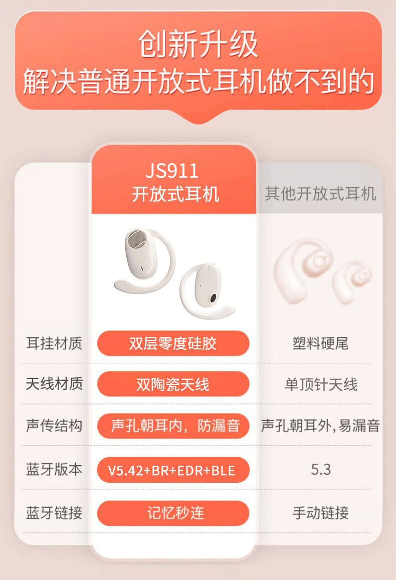 JS911 transfronterizo explosión de sonido OWS nuevo tipo de auricular Bluetooth 5.4 con alta calidad de sonido y larga duración de la batería