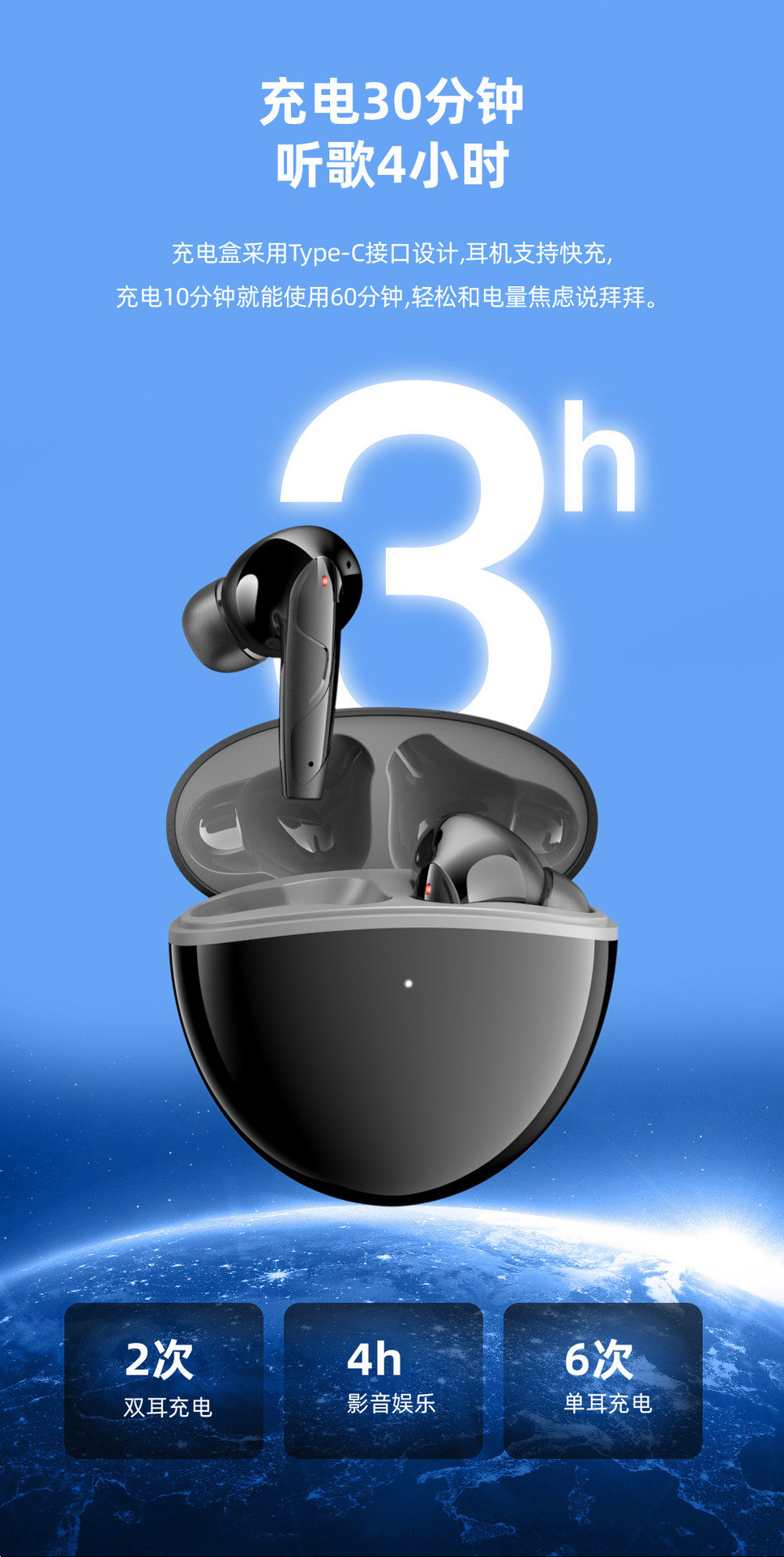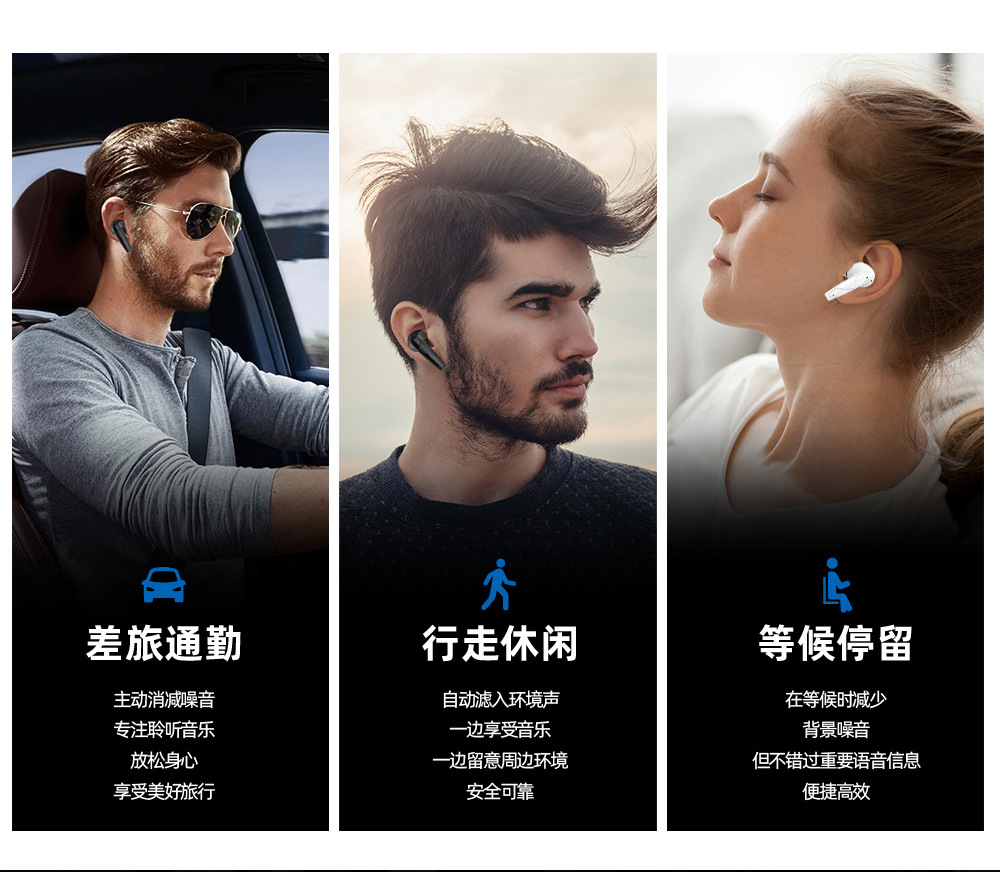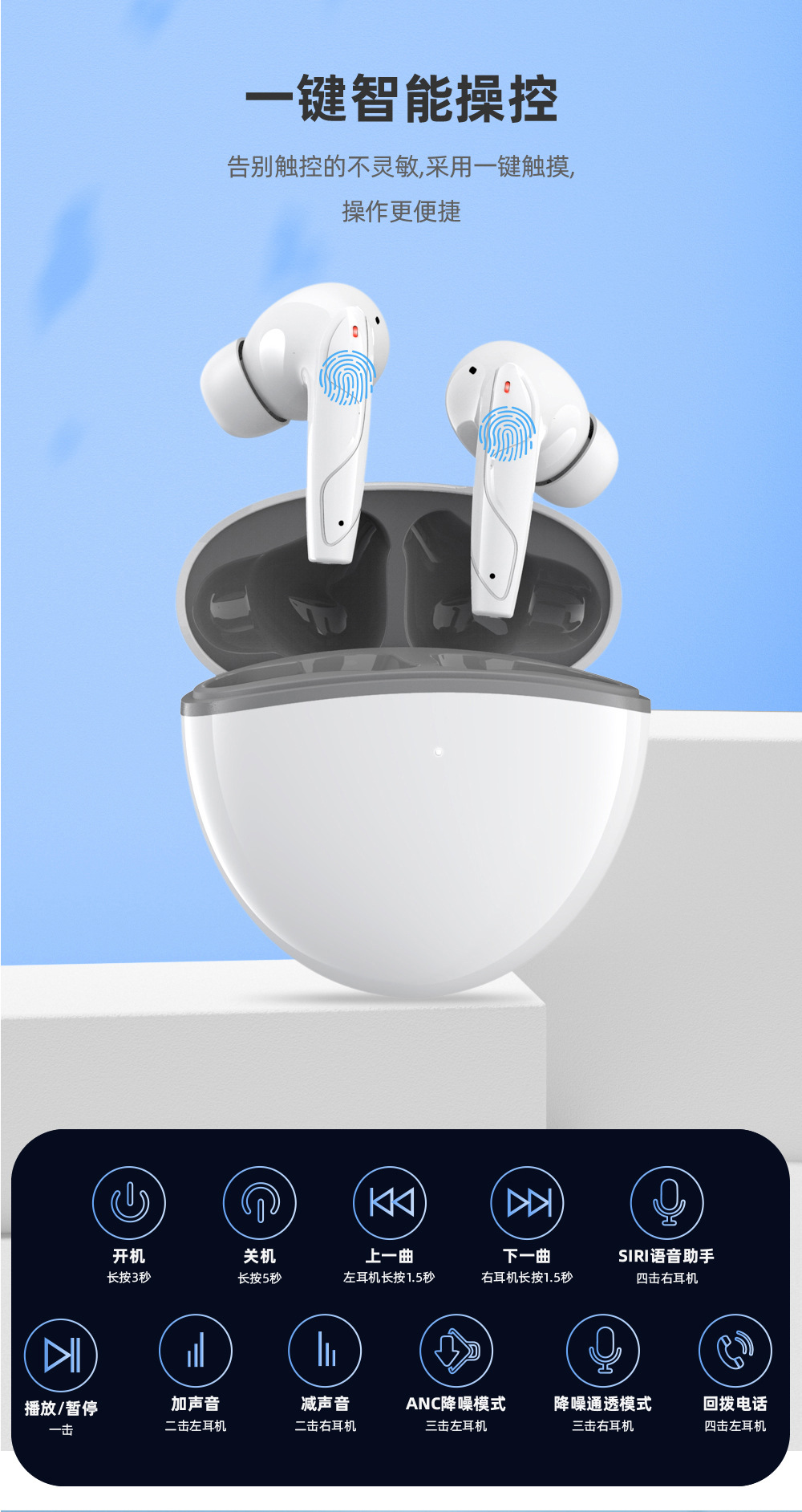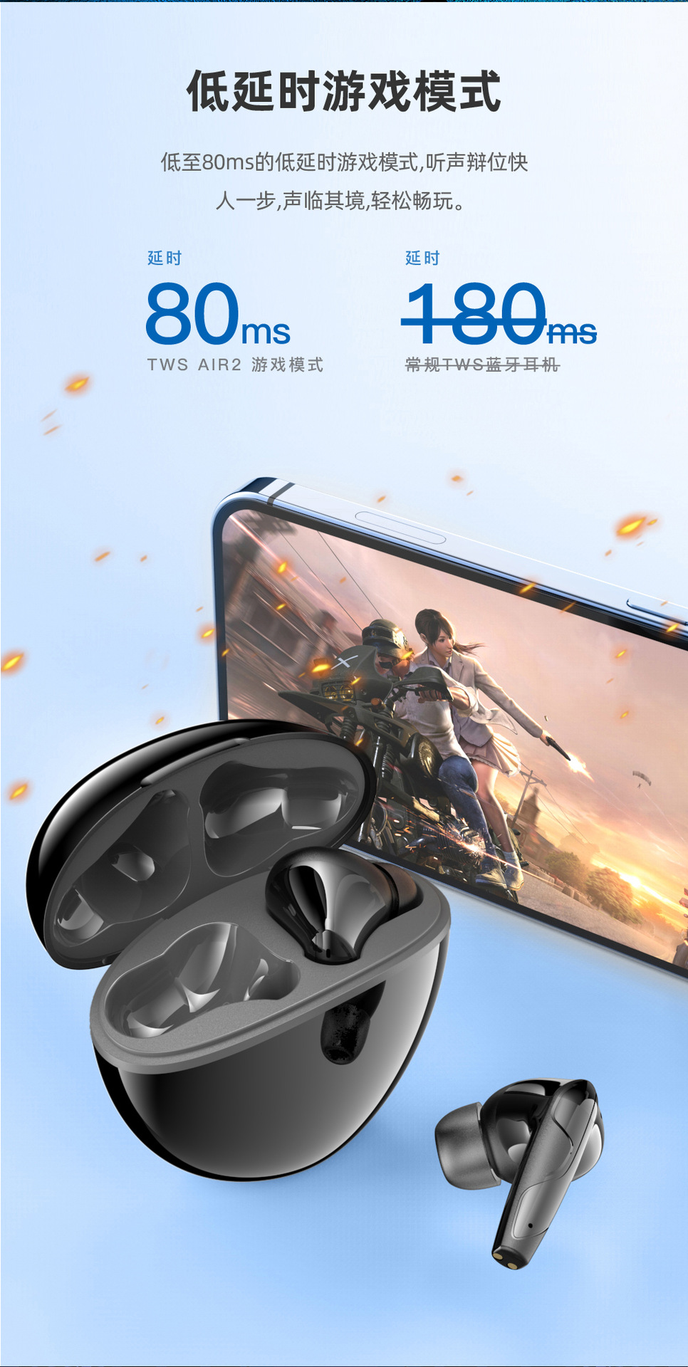 Transfronterizo nuevo AIR2 real auricular bluetooth inalámbrico ANC activa reducción de ruido ultra-larga resistencia auriculares para juegos de baja latencia