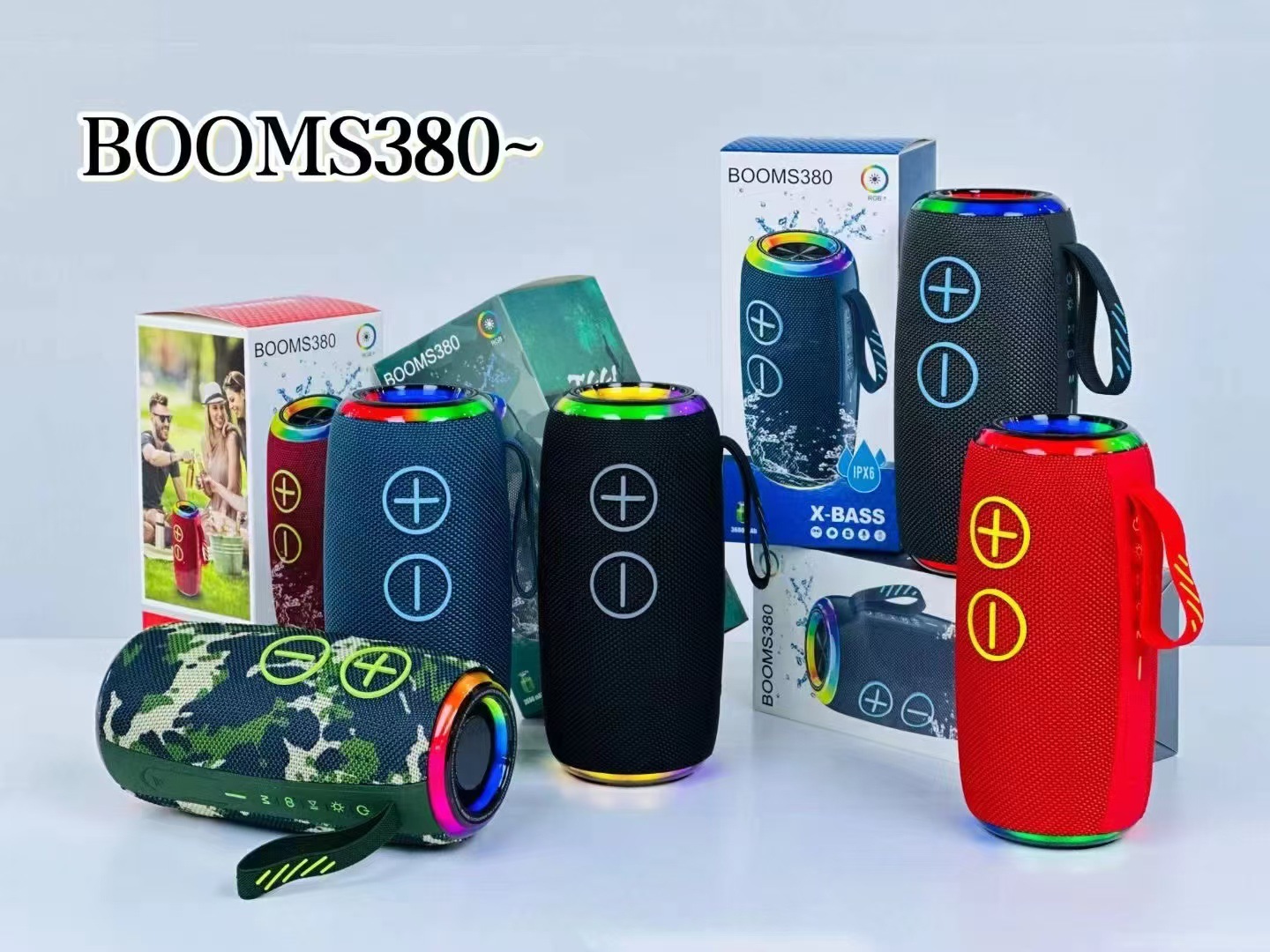 Altavoz Bluetooth transfronterizo doble altavoz subwoofer pesado lámpara de color portátil tarjeta de enchufe sonido altavoz de escritorio impermeable al aire libre