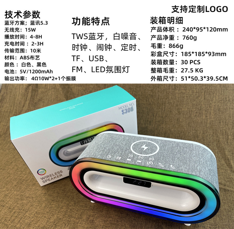 Transfronterizo inalámbrico blanco ruido Bluetooth reloj de sonido despertador LED lámpara tarjeta de enchufe inalámbrico micrófono de escritorio S306