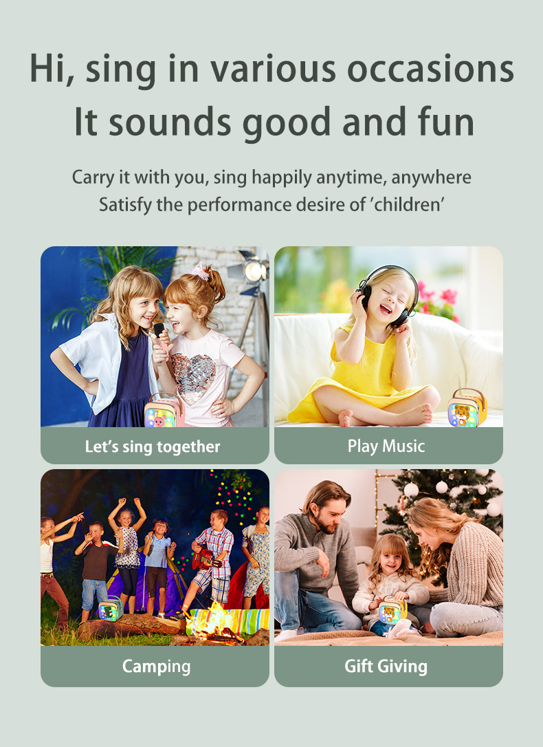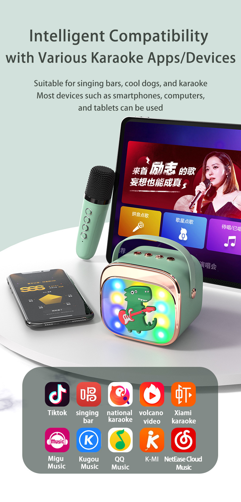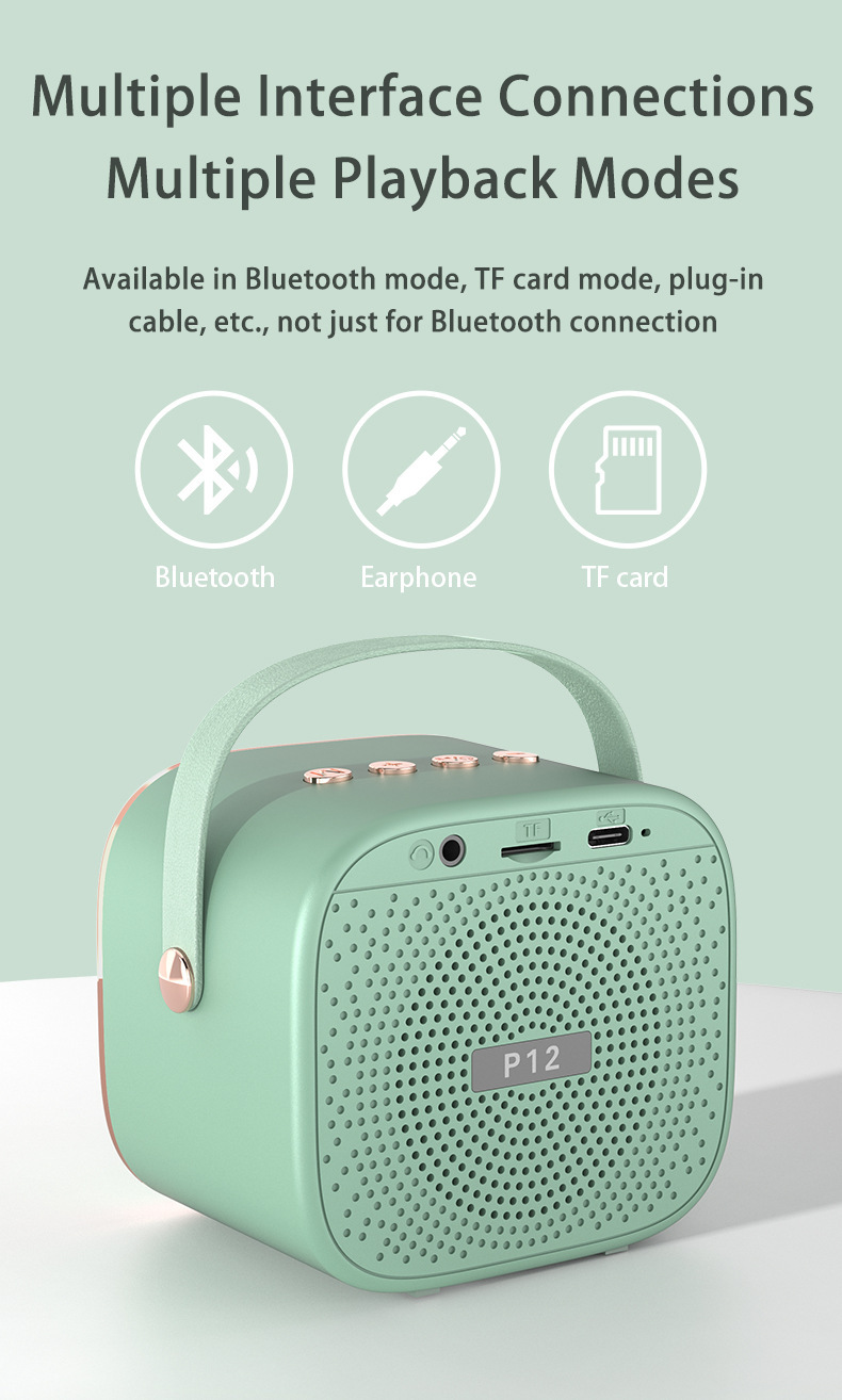 Nuevo P12 altavoz bluetooth k-canción doble micrófono inalámbrico portátil LED luz de color sonido juguete para niños micrófono