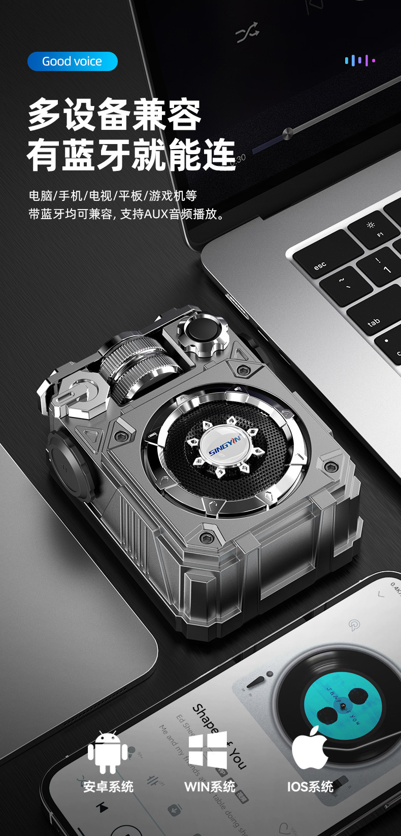 Innovador altavoz Bluetooth nuevo subwoofer portátil al aire libre TF tarjeta de enchufe de sonido inalámbrico fuente de regalo fábrica