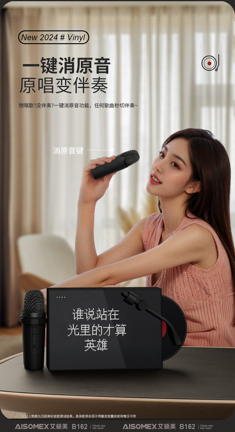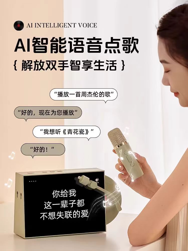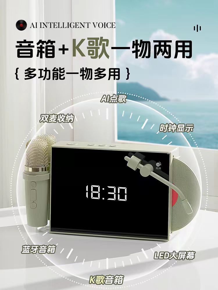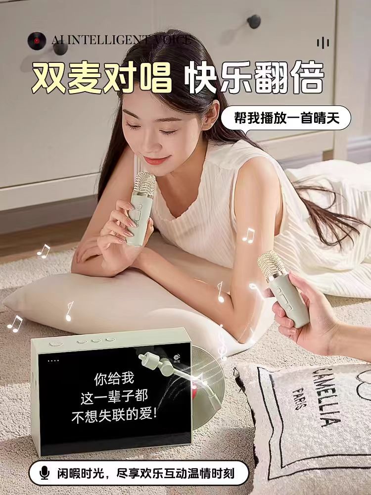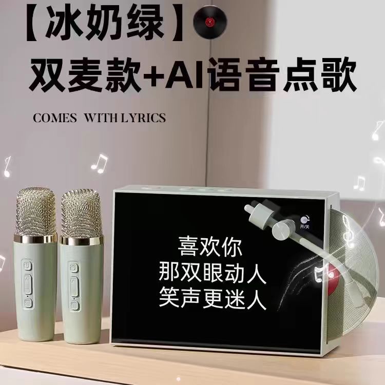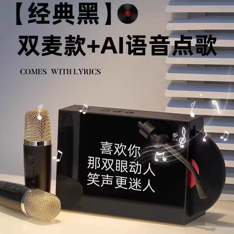 Nuevo disco retro con letras, altavoz inalámbrico Bluetooth, píxeles interactivos, pantalla grande K-canción con micrófono de sonido
