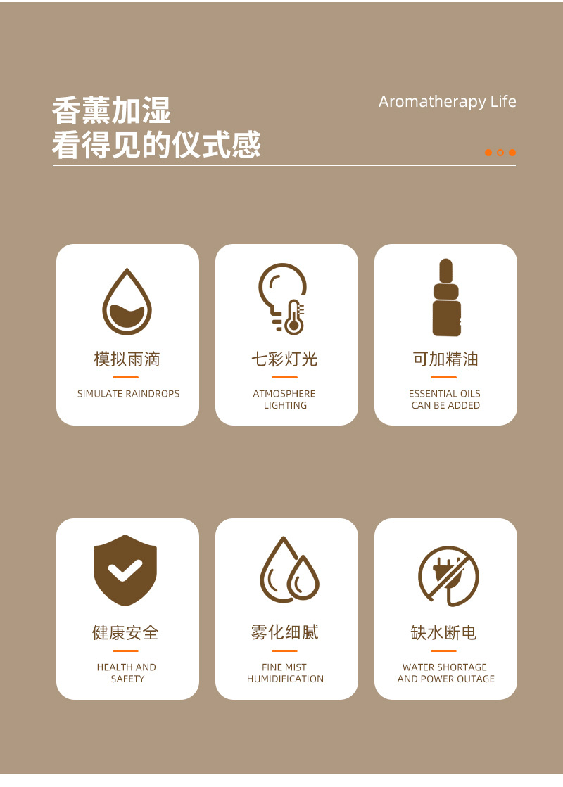 Humidificador de gota de agua transfronteriza personalizado de fábrica máquina de fragancia de madera doméstica de escritorio de control remoto de aceite esencial de diseño silencioso
