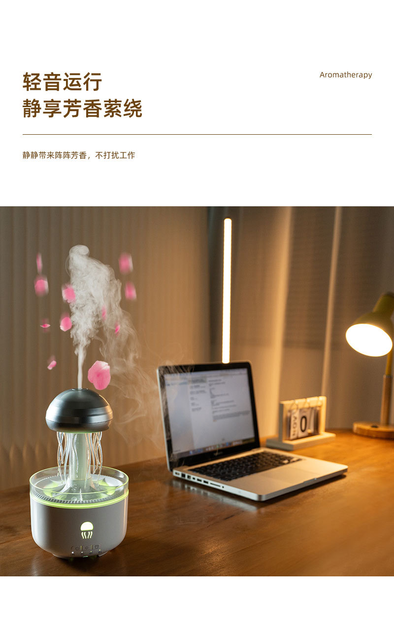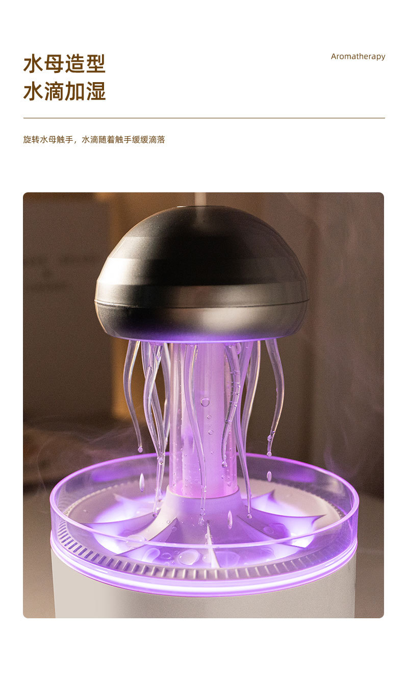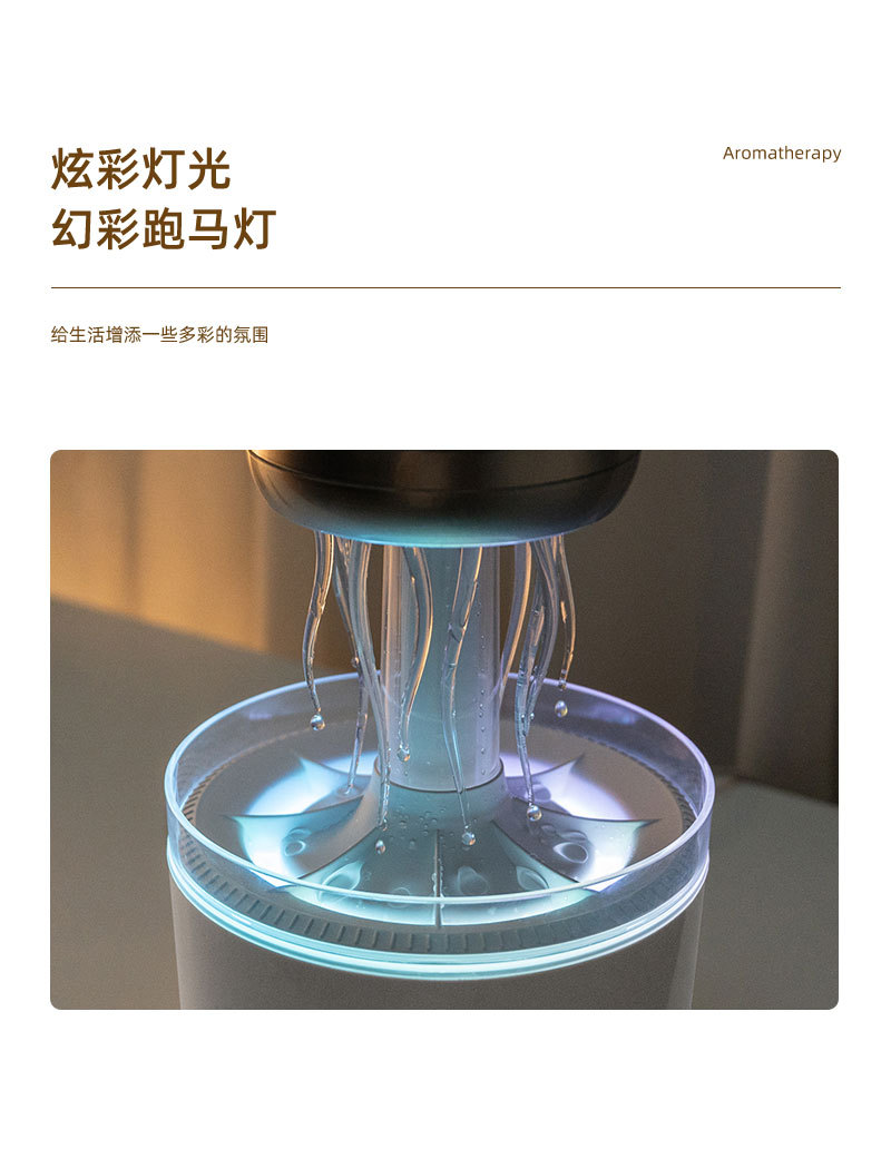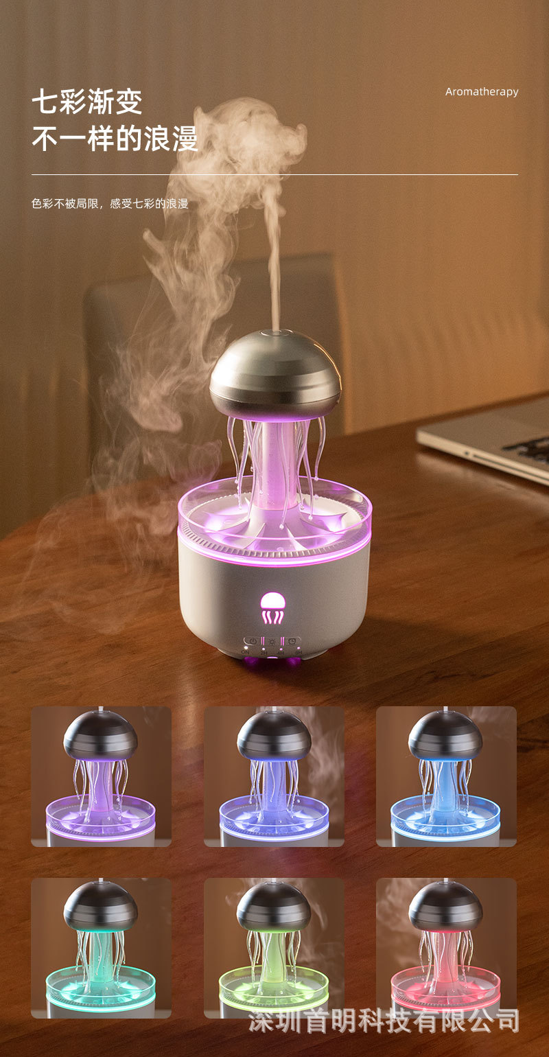 Shouming nuevo tipo de máquina de fragancia de medusas mecánicas rotativas domésticas gotas de lluvia humidificador de escritorio colorido expansión de fragancia de luz