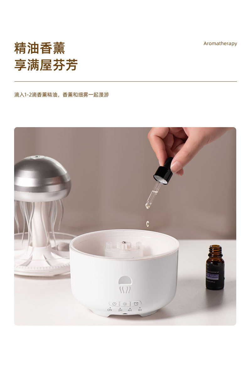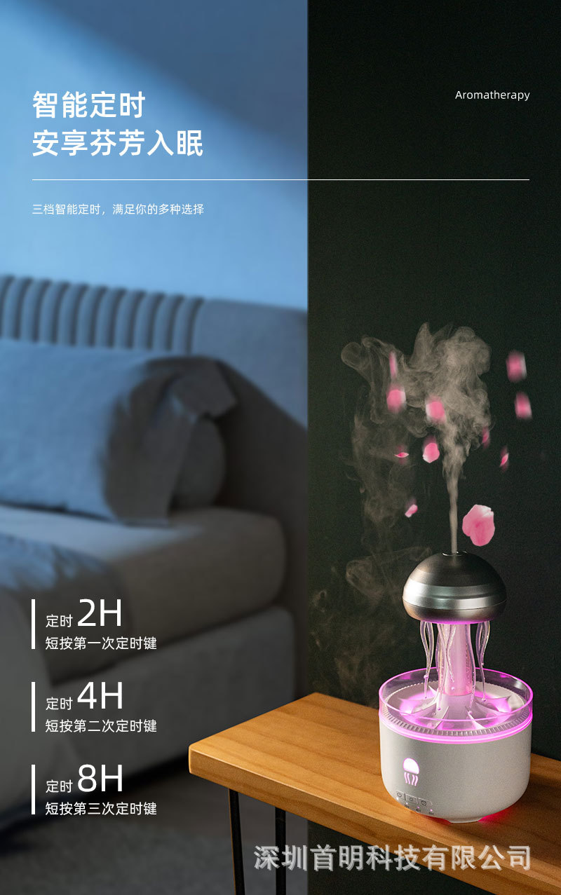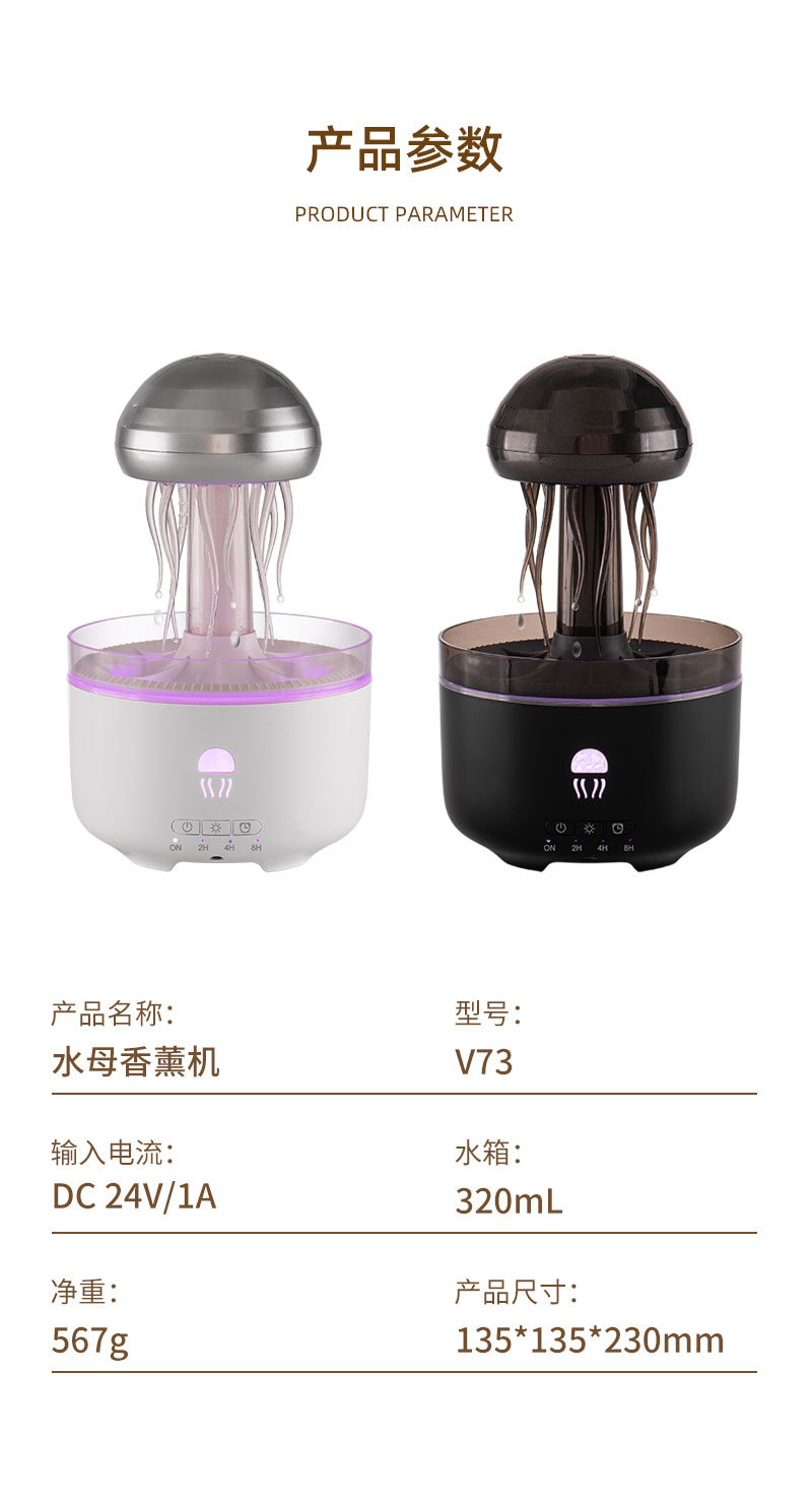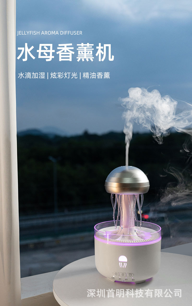 Shouming nuevo tipo de máquina de fragancia de medusas mecánicas rotativas domésticas gotas de lluvia humidificador de escritorio colorido expansión de fragancia de luz