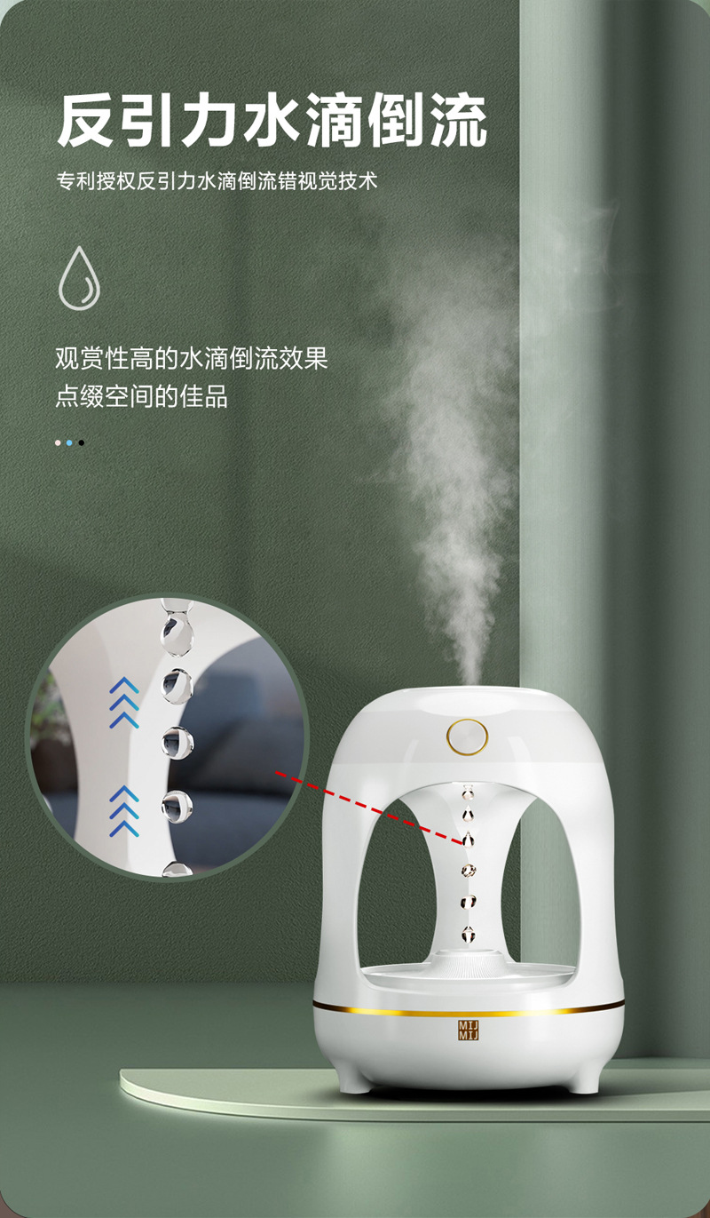 Humidificador antigravedad de gran capacidad, dormitorio silencioso, sala de estar, escritorio, hogar, gotas de agua suspendidas creativas, aromaterapia de reflujo