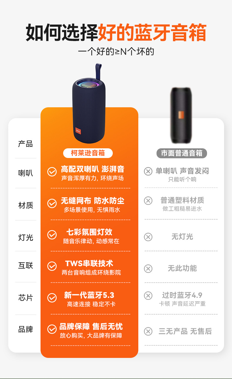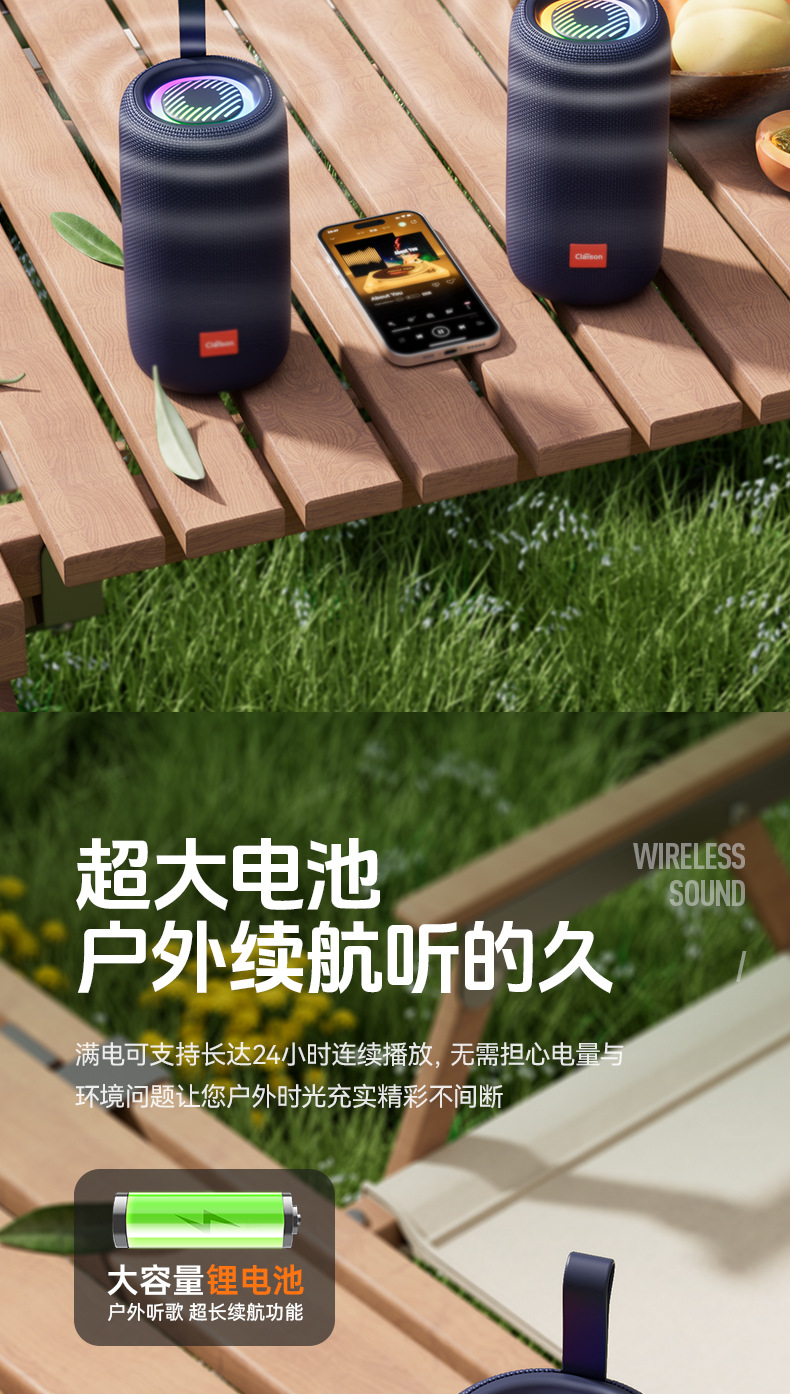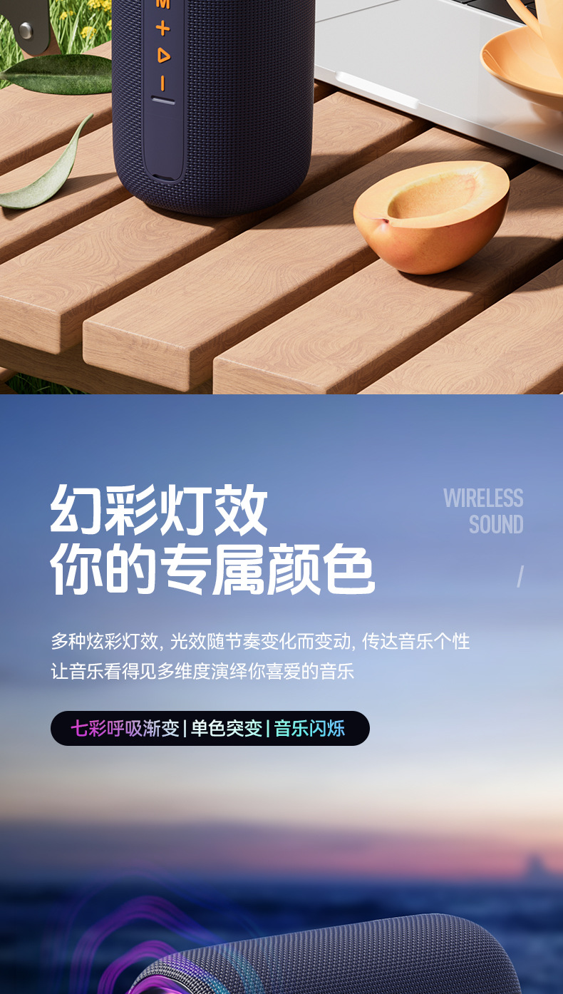 Deportes al aire libre a prueba de agua Bluetooth sonido alto volumen portátil subwoofer colorido alta calidad de sonido larga duración altavoz HIFI