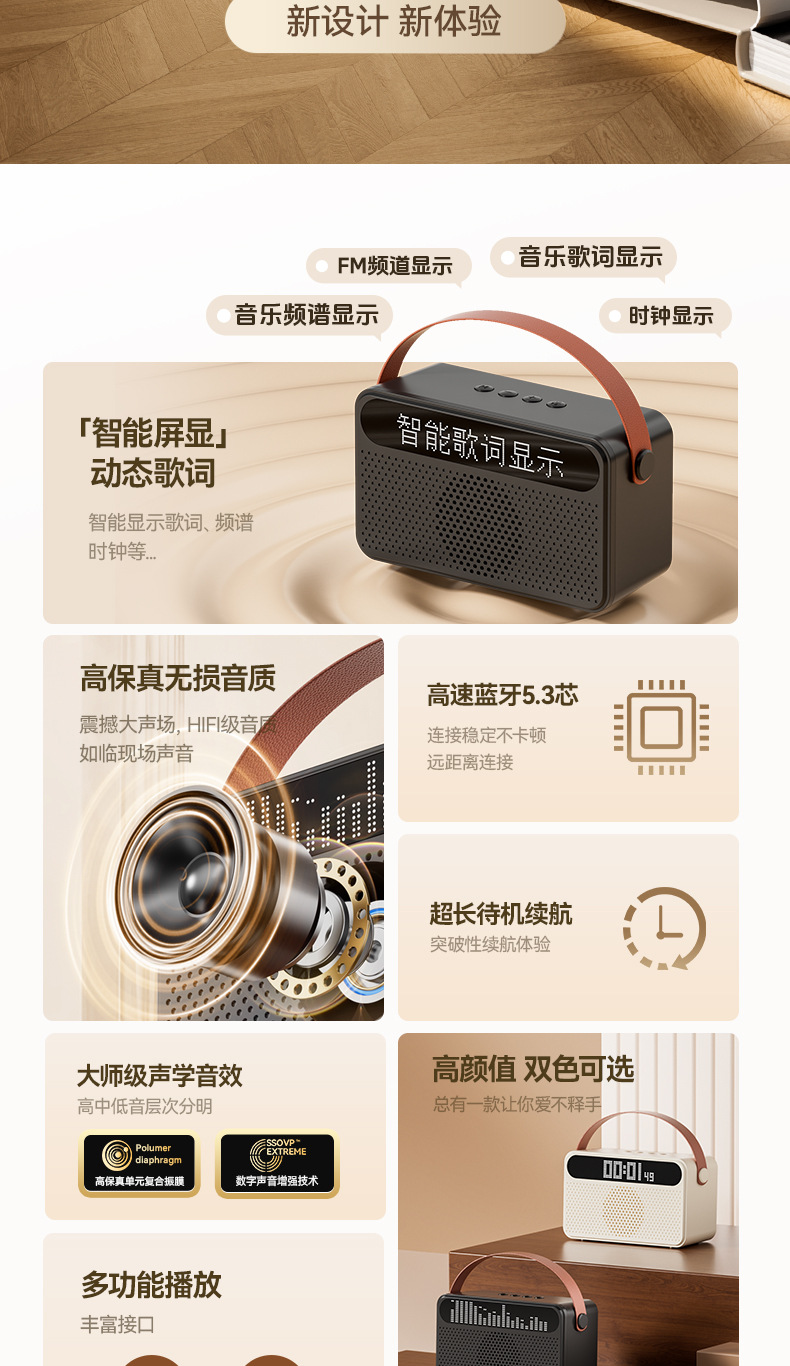 2024 nuevo altavoz Bluetooth portátil con letras un solo altavoz doméstico KTV tarjeta USB letras de pantalla de sonido