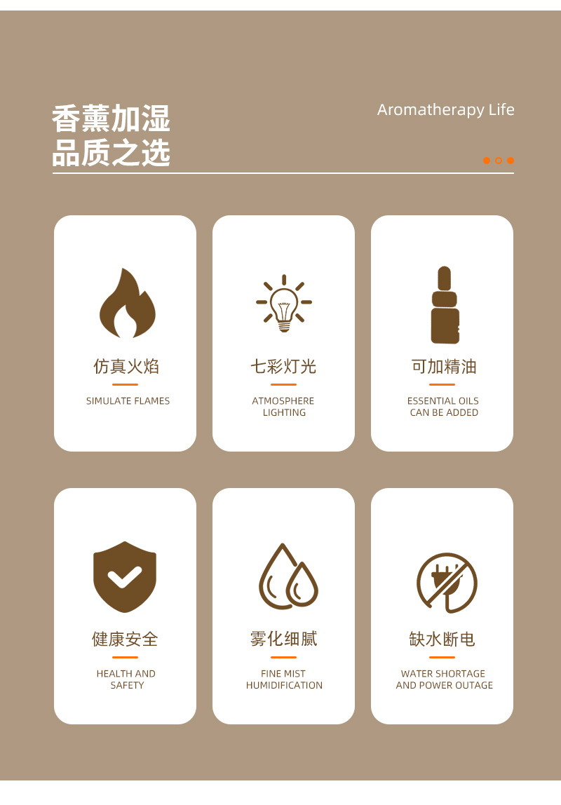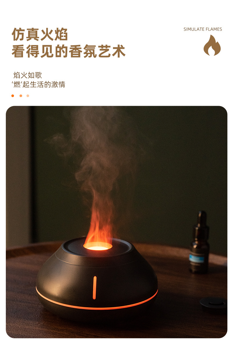 Nueva máquina de aromaterapia de llama transfronteriza aceite esencial fragancia e hidratante humidificador ultrasónico de escritorio linterna colorida del hogar