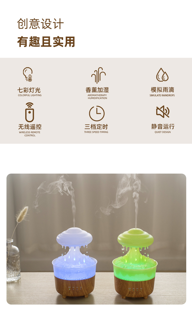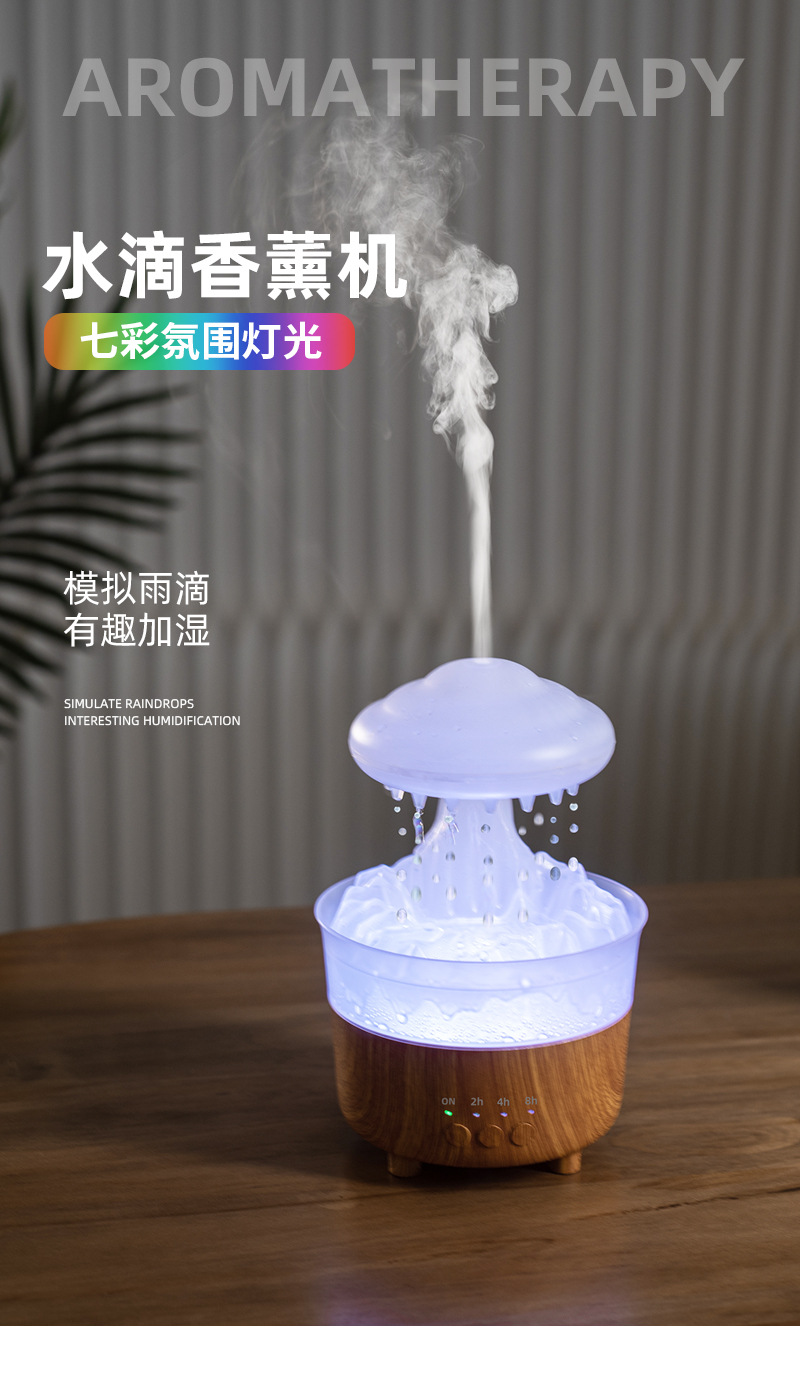 Nuevo grano de madera gota de agua máquina de aromaterapia escritorio difusor de aceite esencial humidificador hogar niebla volumen colorido noche luz transfronteriza