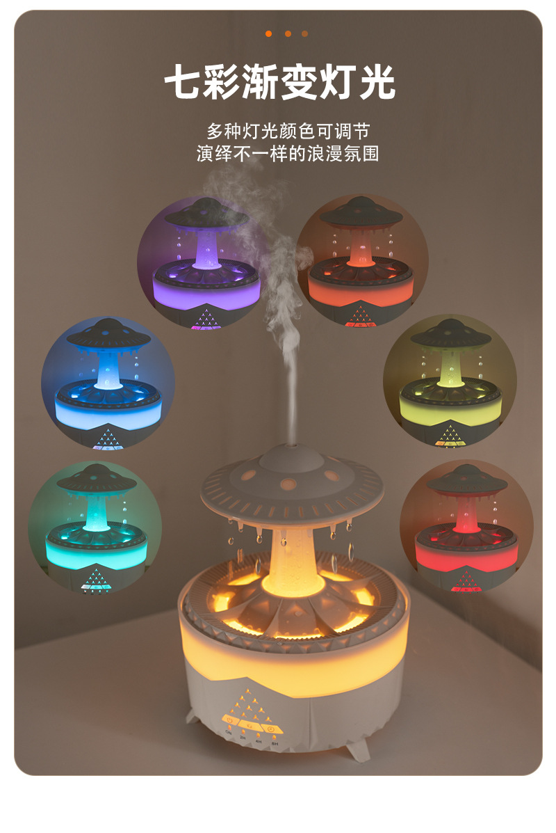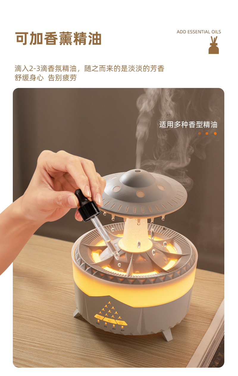 Humidificador de llama de simulación explosiva, máquina de aromaterapia de gotas de lluvia, atomizador de pulverización volcánica inteligente de gran capacidad para el hogar al por mayor