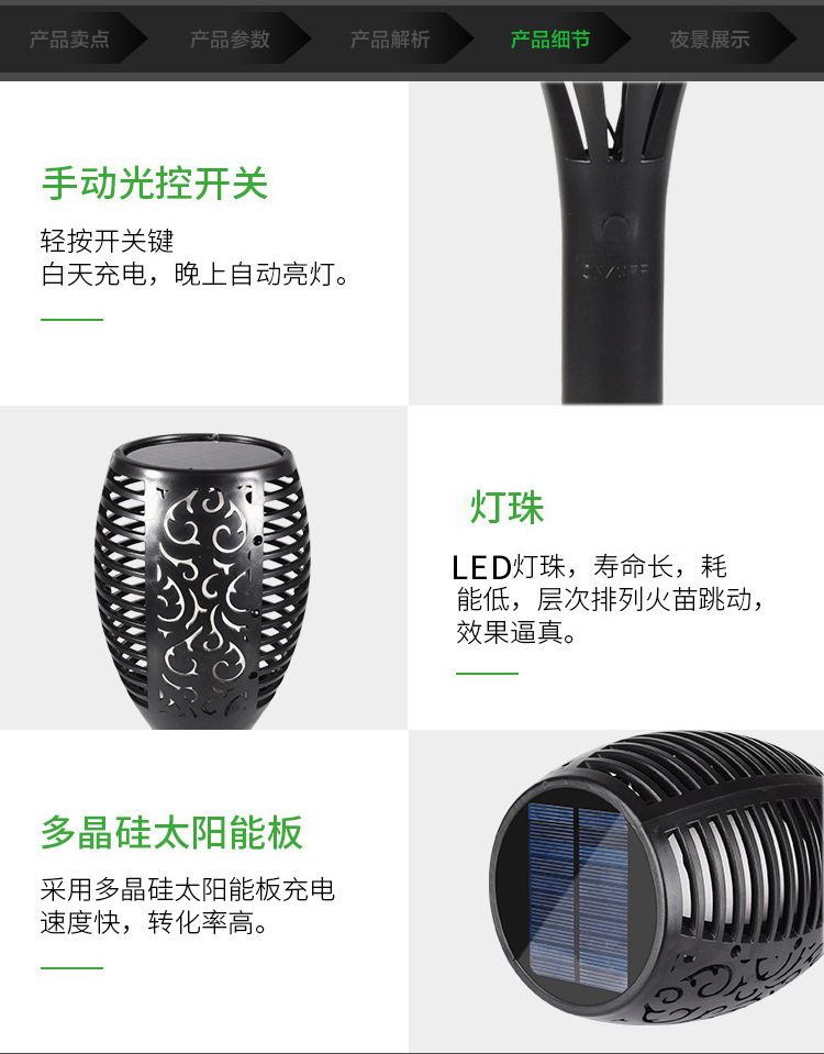 Lámpara de llama solar Lámpara de jardín exterior Lámpara de tierra Lámpara de antorcha de simulación Lámpara de jardín impermeable Lámpara de paisaje solar